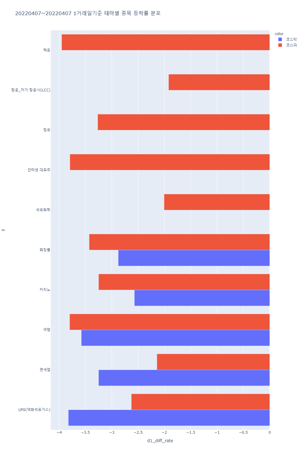 ▷상하이 봉쇄에 따른 영업 환경 악화 우려 지속 등에 화장품, 여행, 항공/저가 항공사, 면세점, 카지노 등 중국 소비 관련 테마 하락.