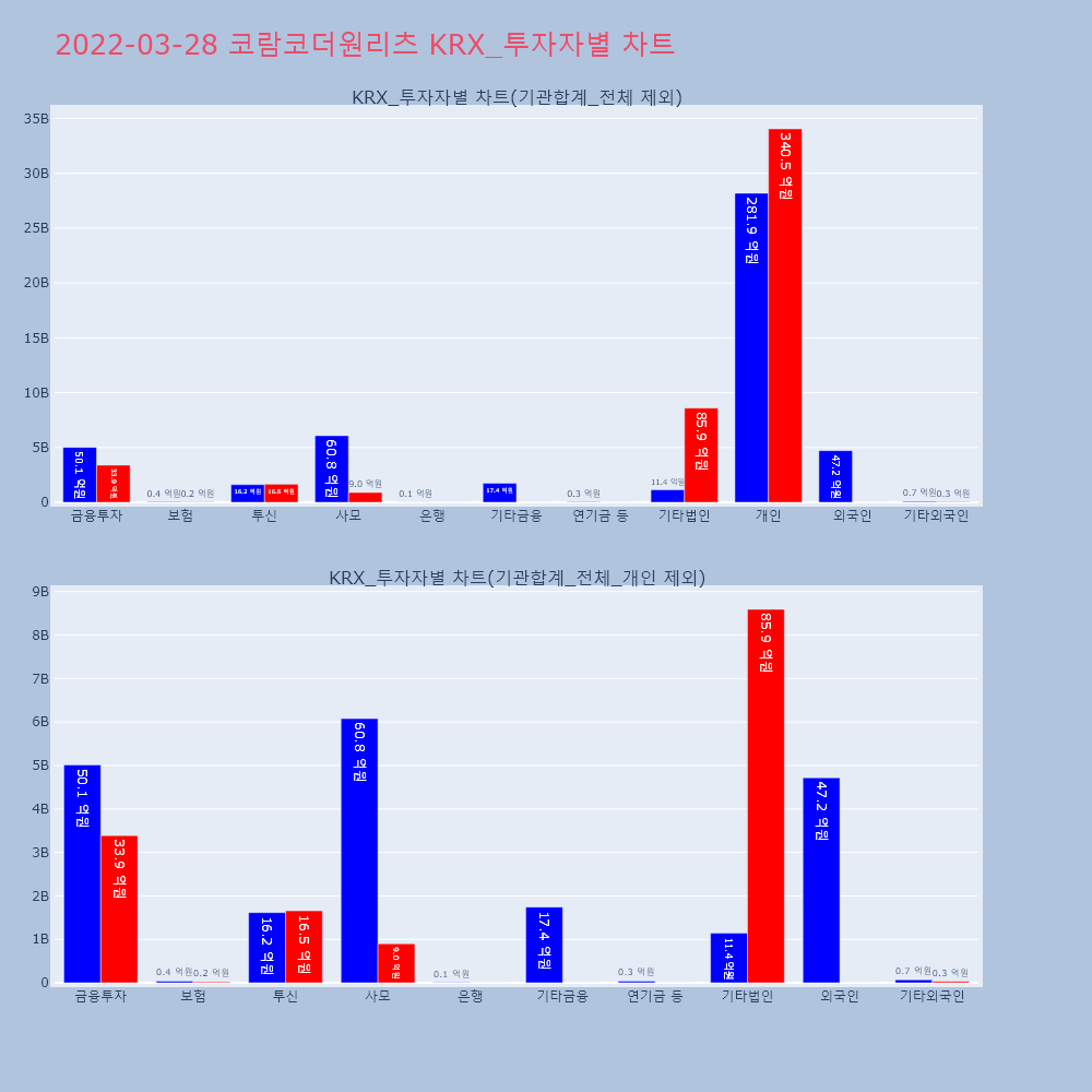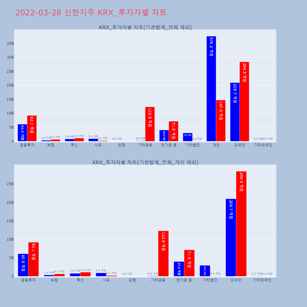 | 투자기관 | 거래량_매도 | 거래량_매수 | 거래량_순매수 | 거래대금_매도 | 거래대금_매수 | 거래대금_순매수 |