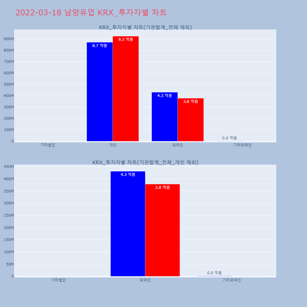 | 외국인 | 1,313 | 682 | -631 | 31,184,900 | 16,125,300 | -15,059,600 |