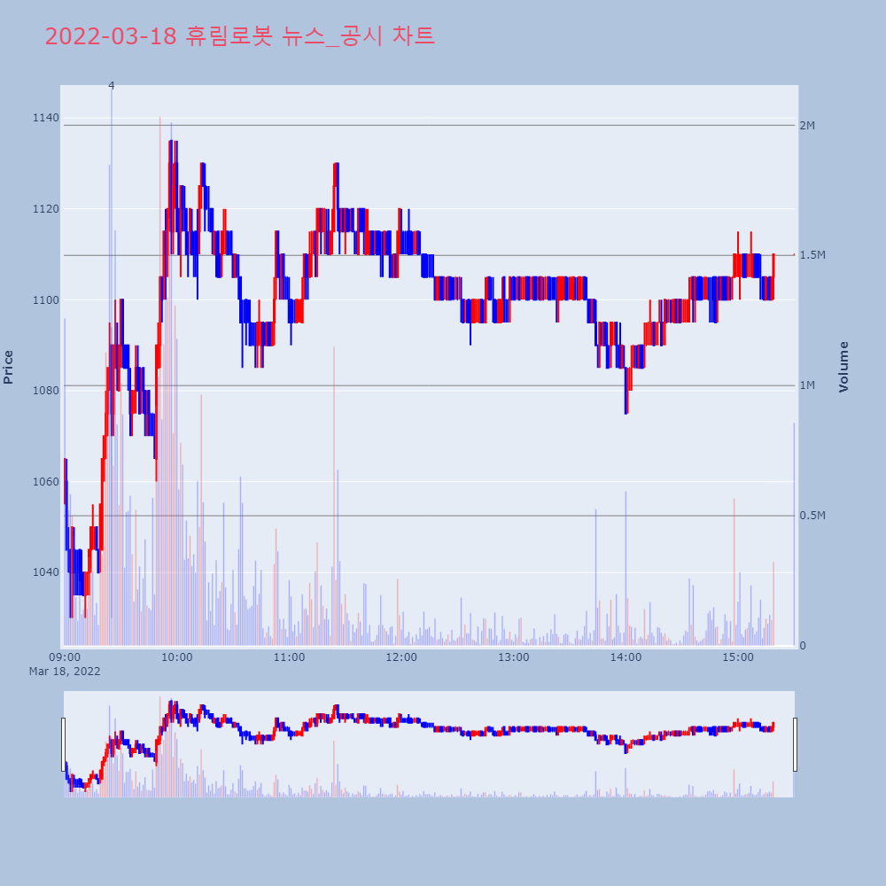 | 1 | 휴림로봇, 0.00% VI 발동휴림로봇(090710)이 VI가 발동했다. 현재 987 | 조선경제 | 휴림로봇 | 2022-03-17 09:00:11 |