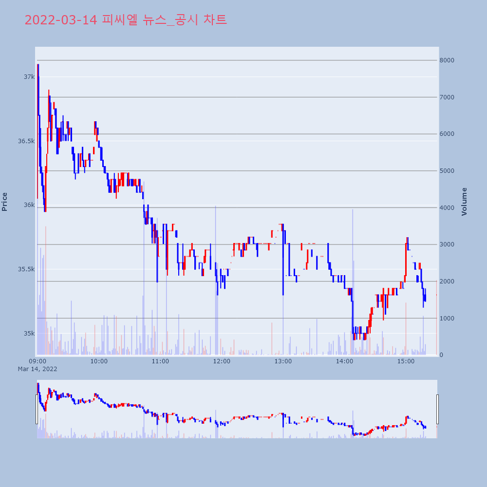 | 3 | 플래티어, +10.43% VI 발동플래티어(367000)가 VI가 발동했다. 전일 대비 | 조선경제 | 플래티어 | 2022-03-15 14:29:59 |