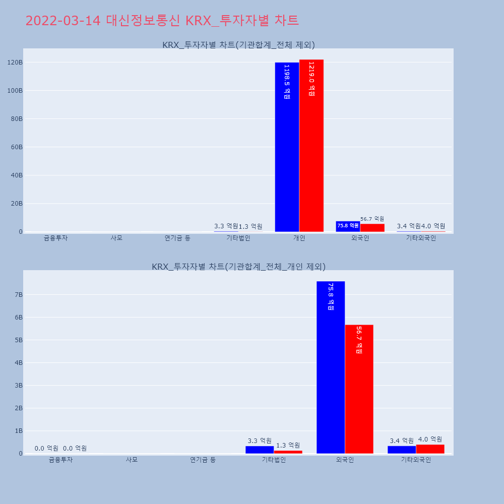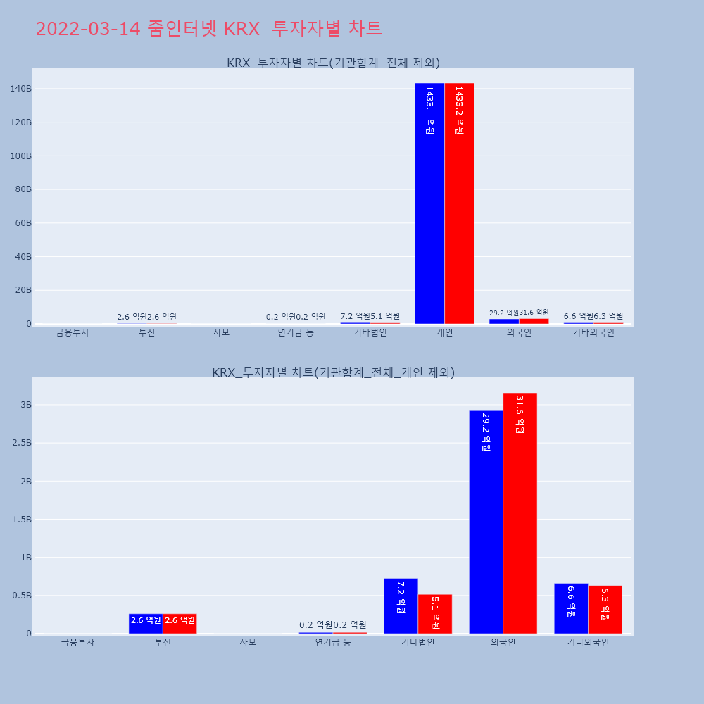 | 투자기관 | 거래량_매도 | 거래량_매수 | 거래량_순매수 | 거래대금_매도 | 거래대금_매수 | 거래대금_순매수 |