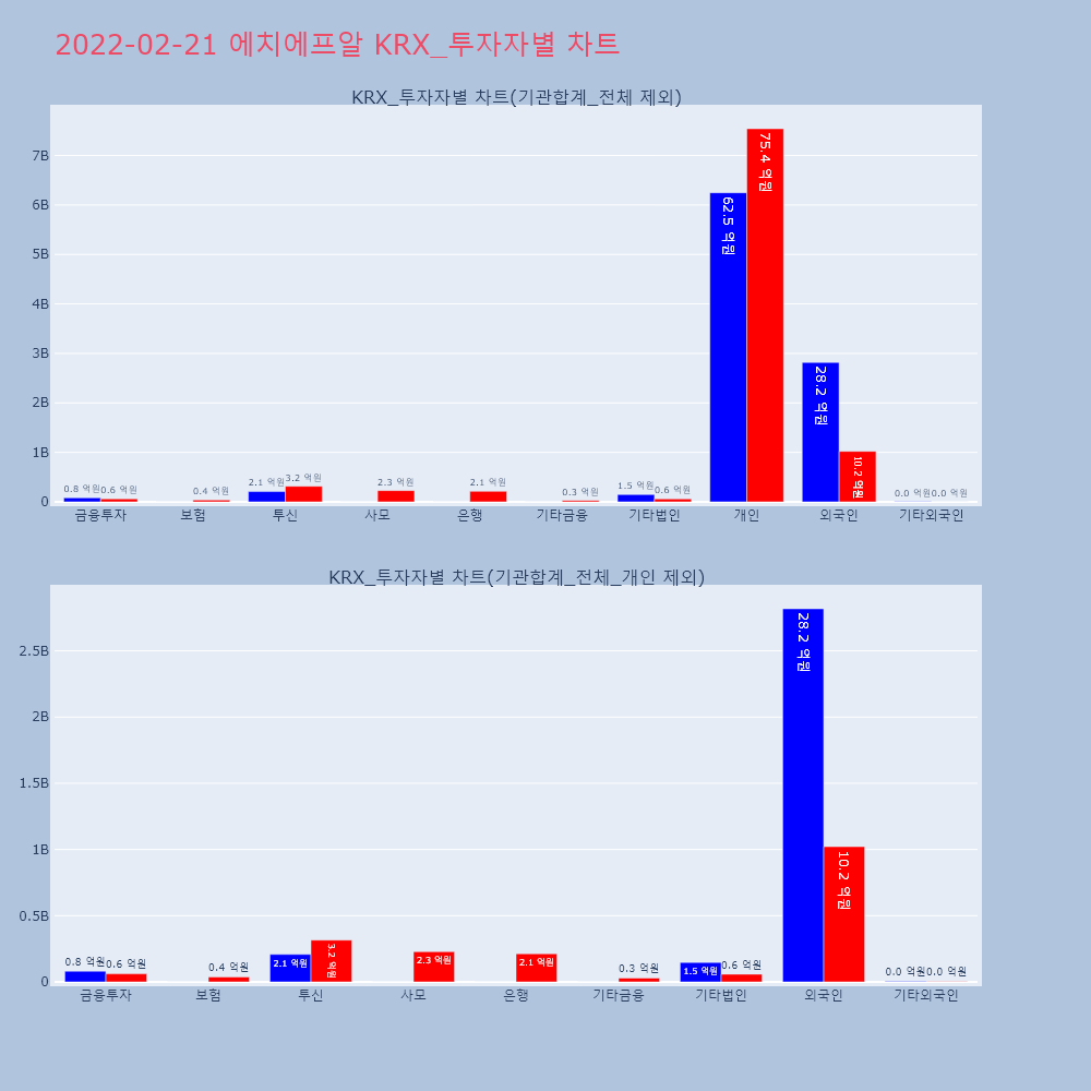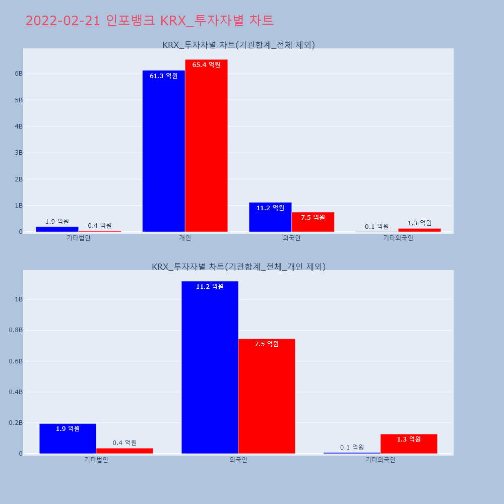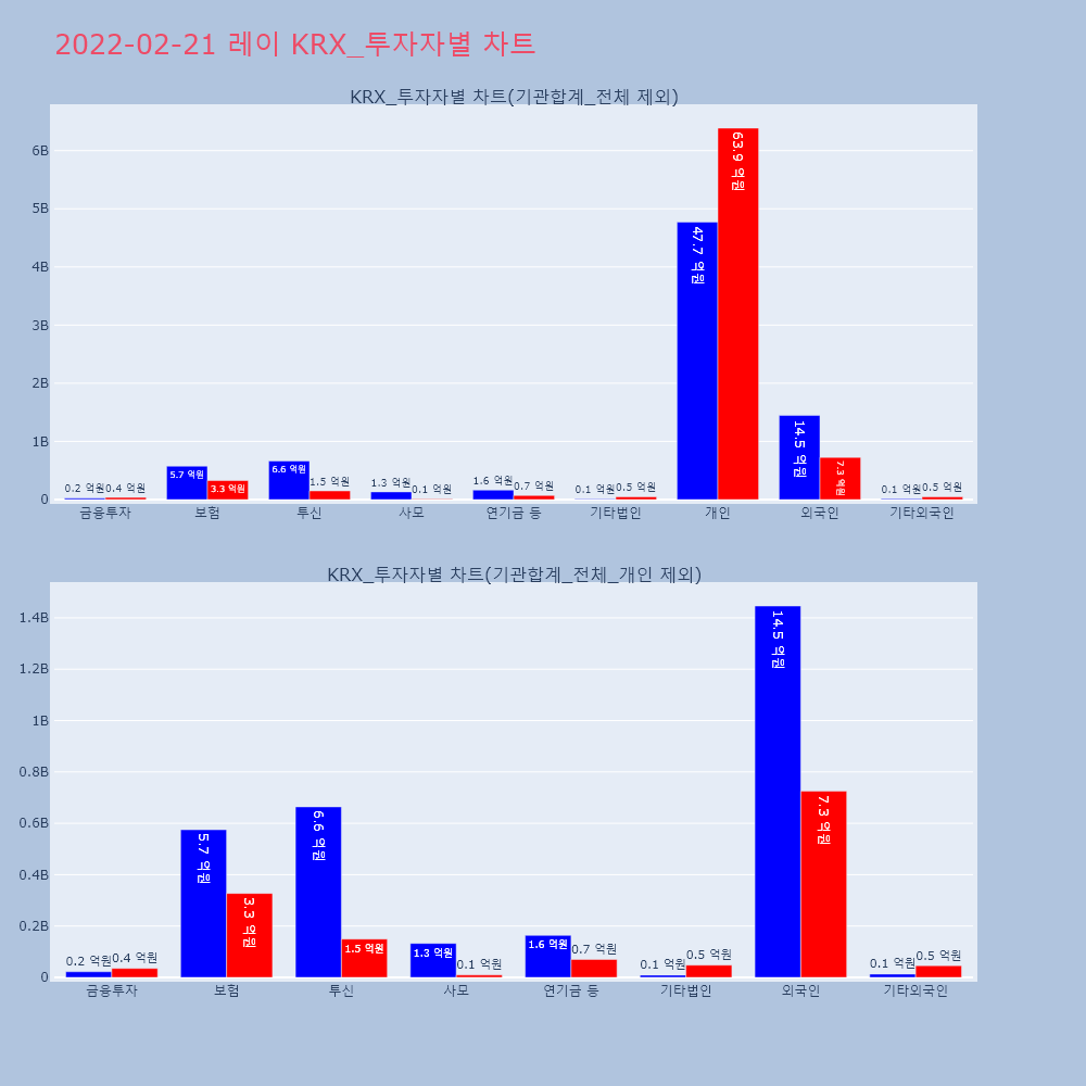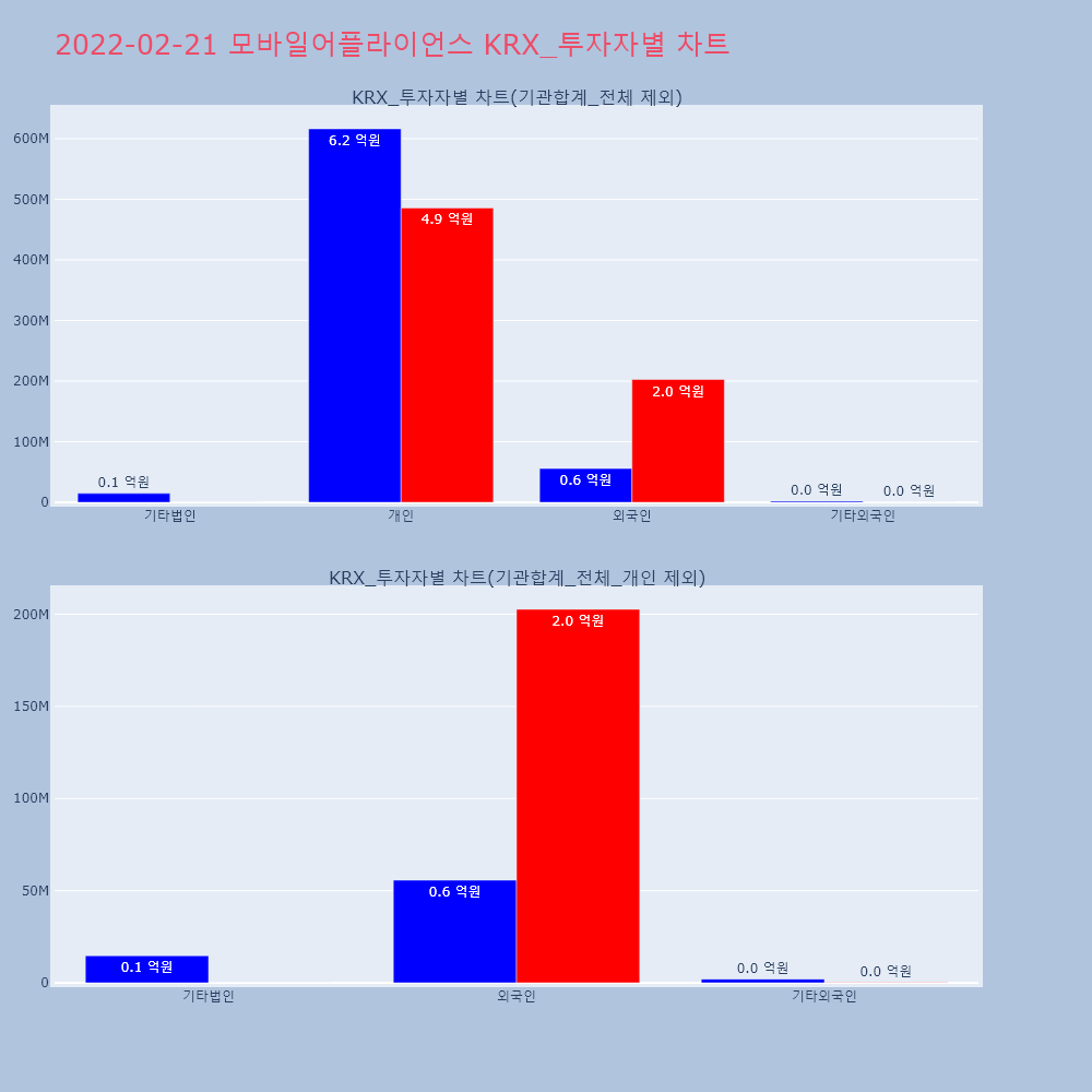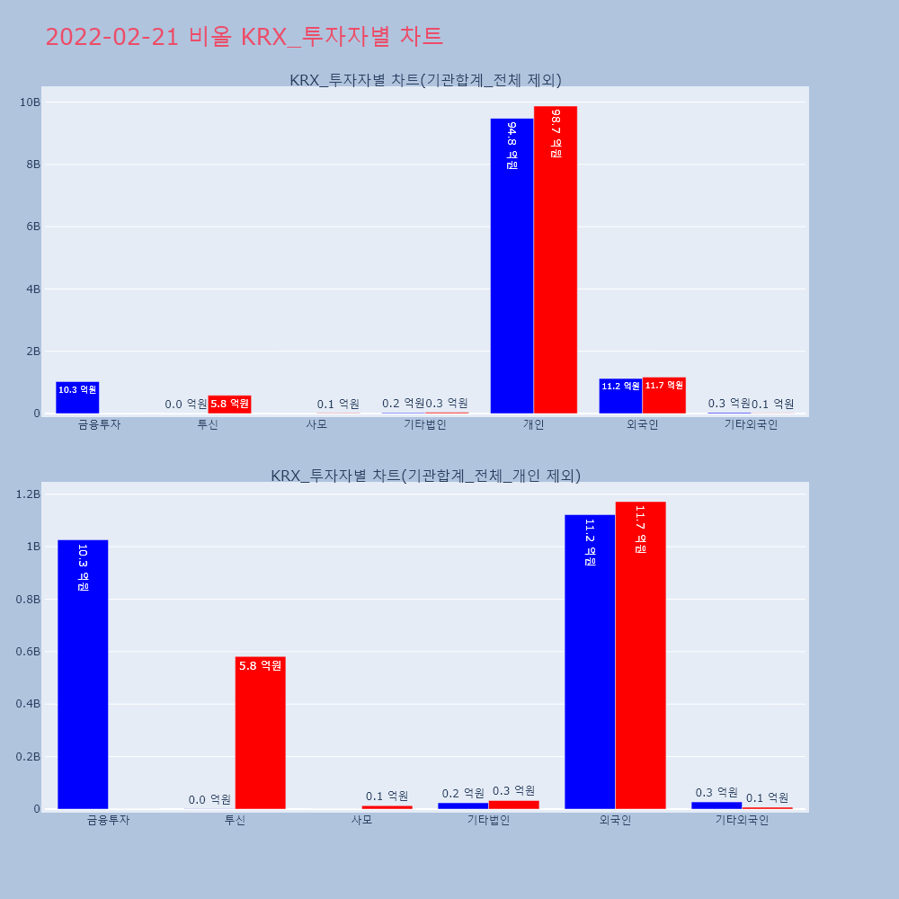 | 투자기관 | 거래량_매도 | 거래량_매수 | 거래량_순매수 | 거래대금_매도 | 거래대금_매수 | 거래대금_순매수 |