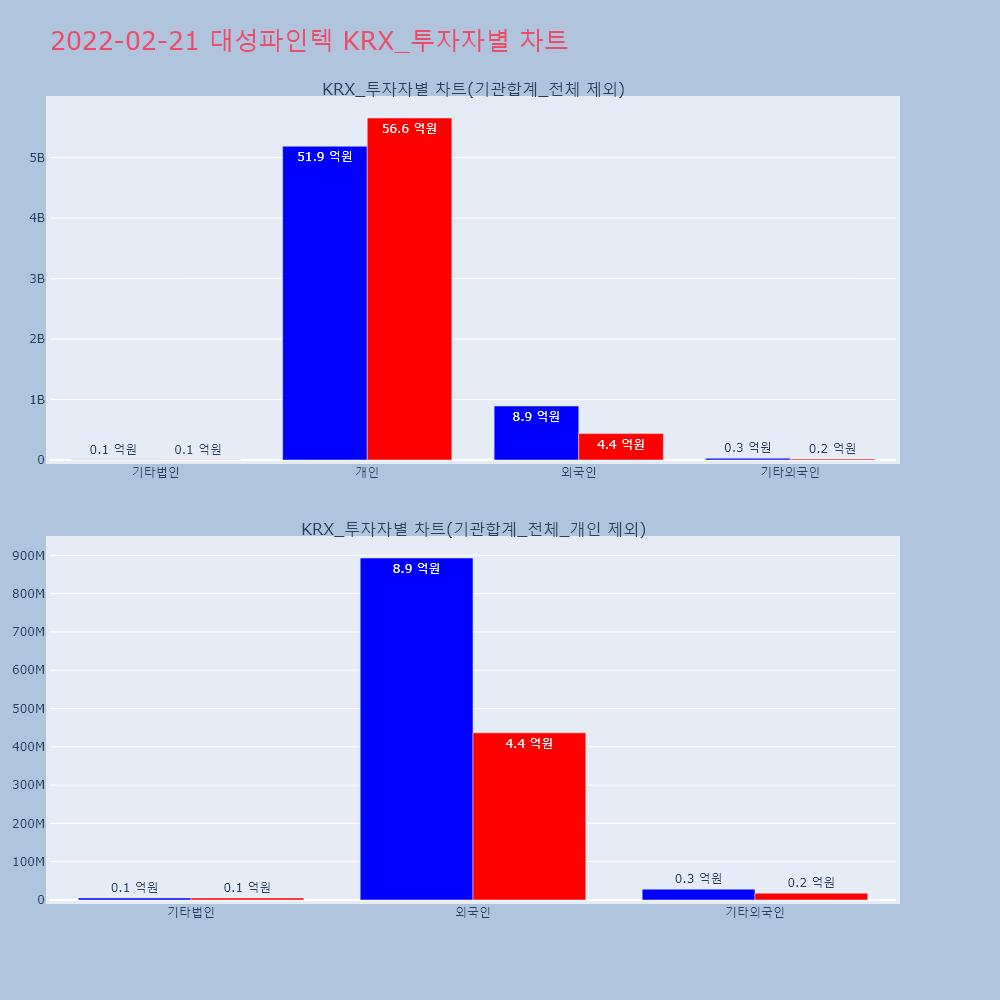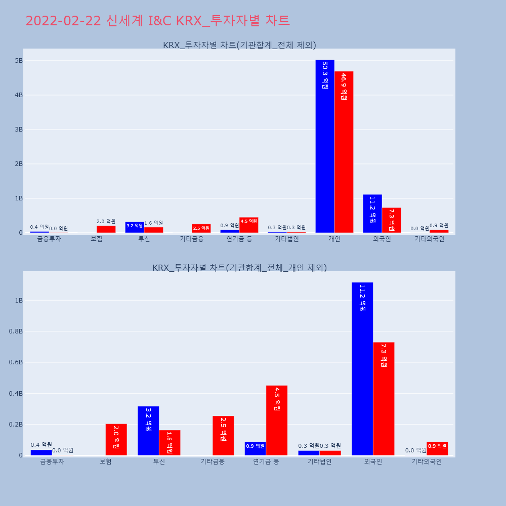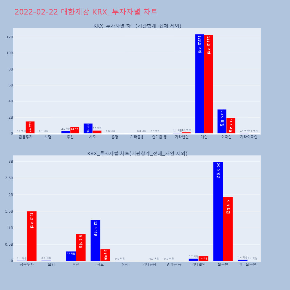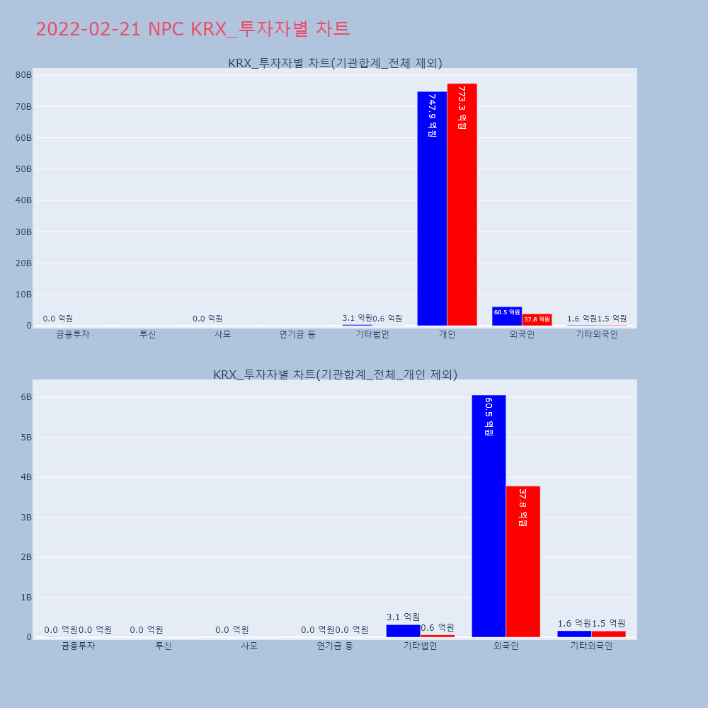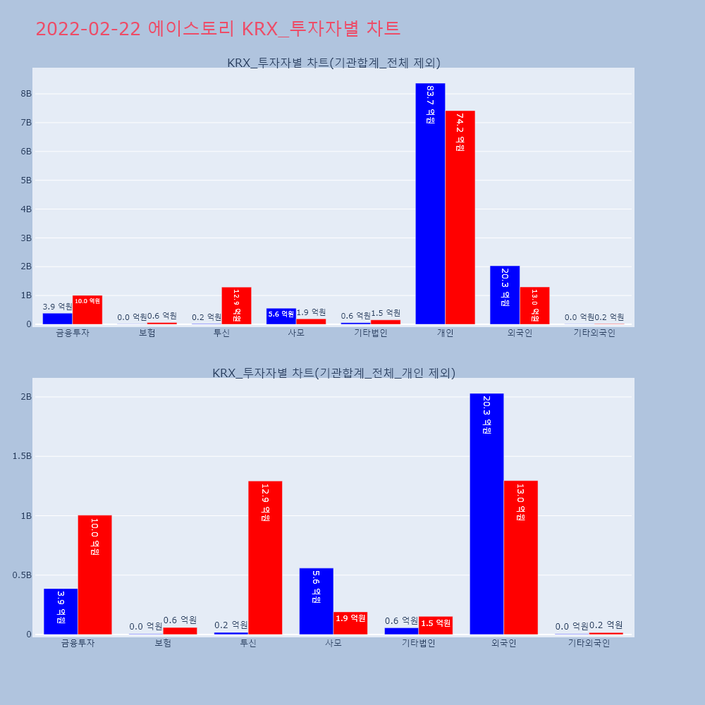 | 투자기관 | 거래량_매도 | 거래량_매수 | 거래량_순매수 | 거래대금_매도 | 거래대금_매수 | 거래대금_순매수 |