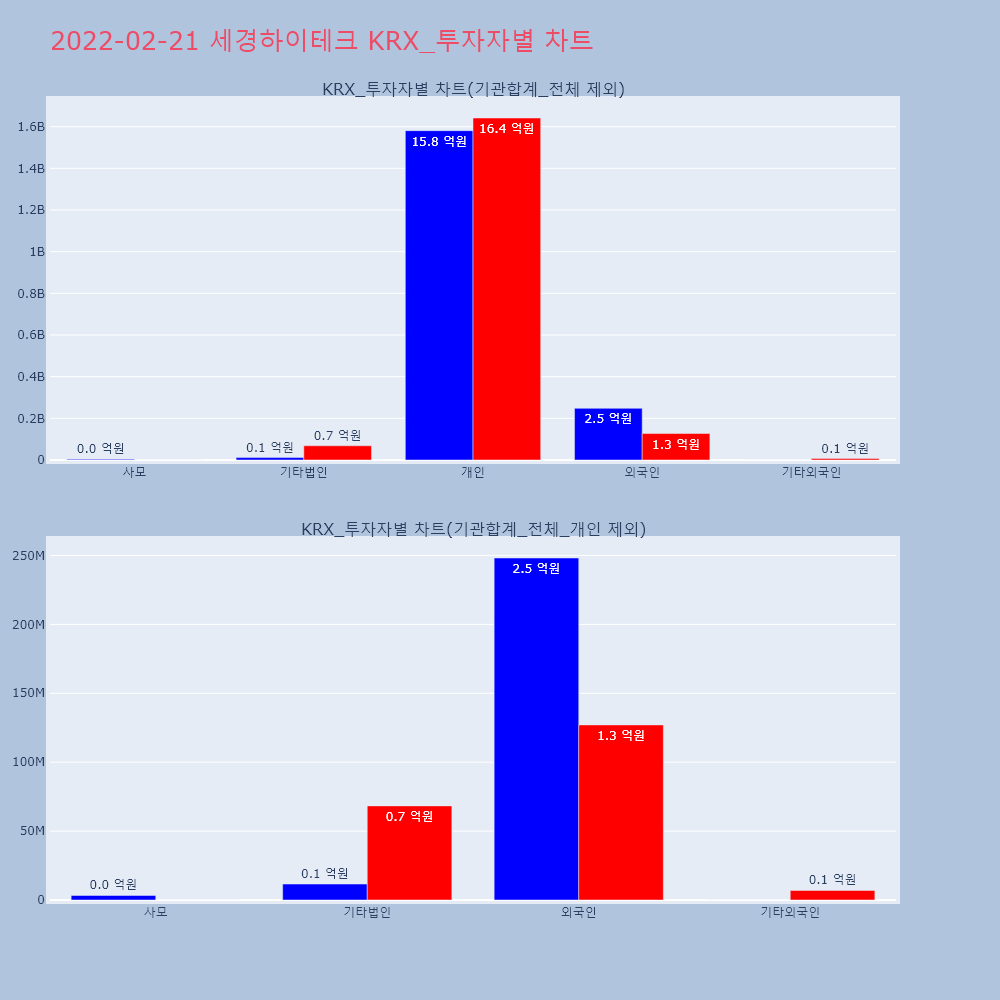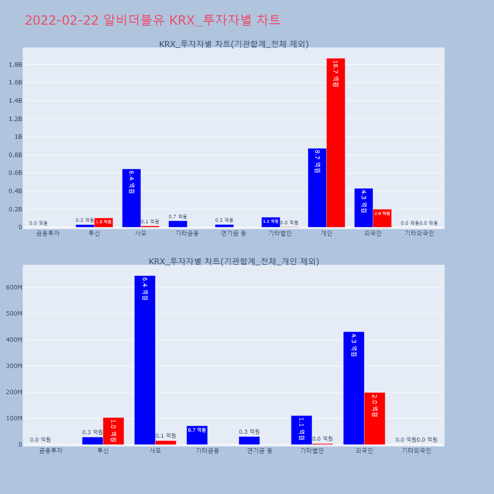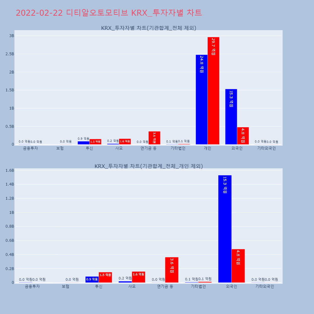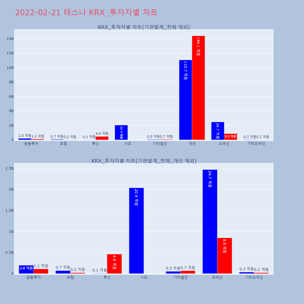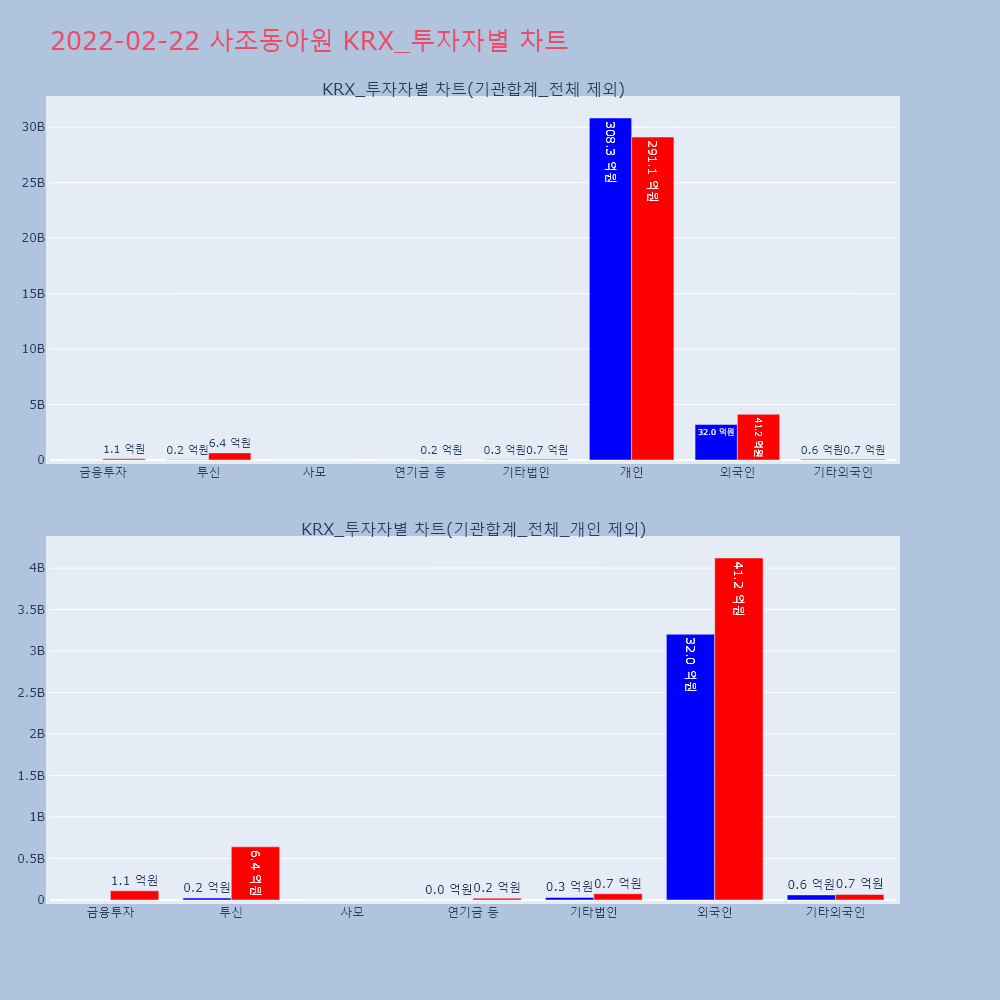 | 투자기관 | 거래량_매도 | 거래량_매수 | 거래량_순매수 | 거래대금_매도 | 거래대금_매수 | 거래대금_순매수 |