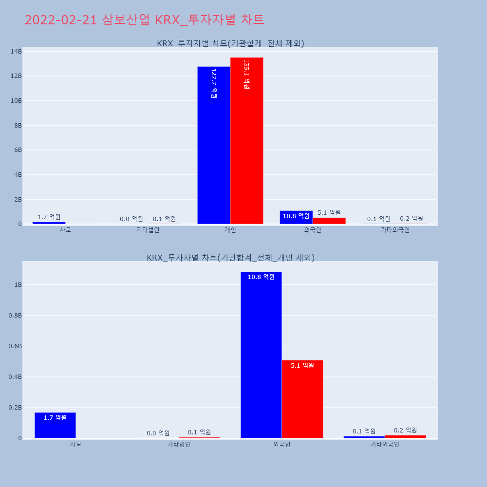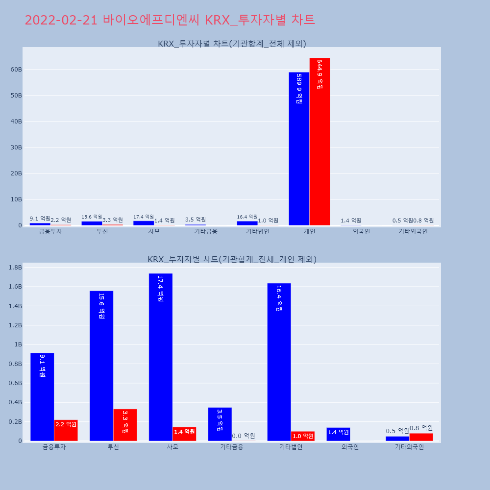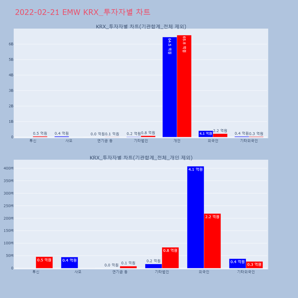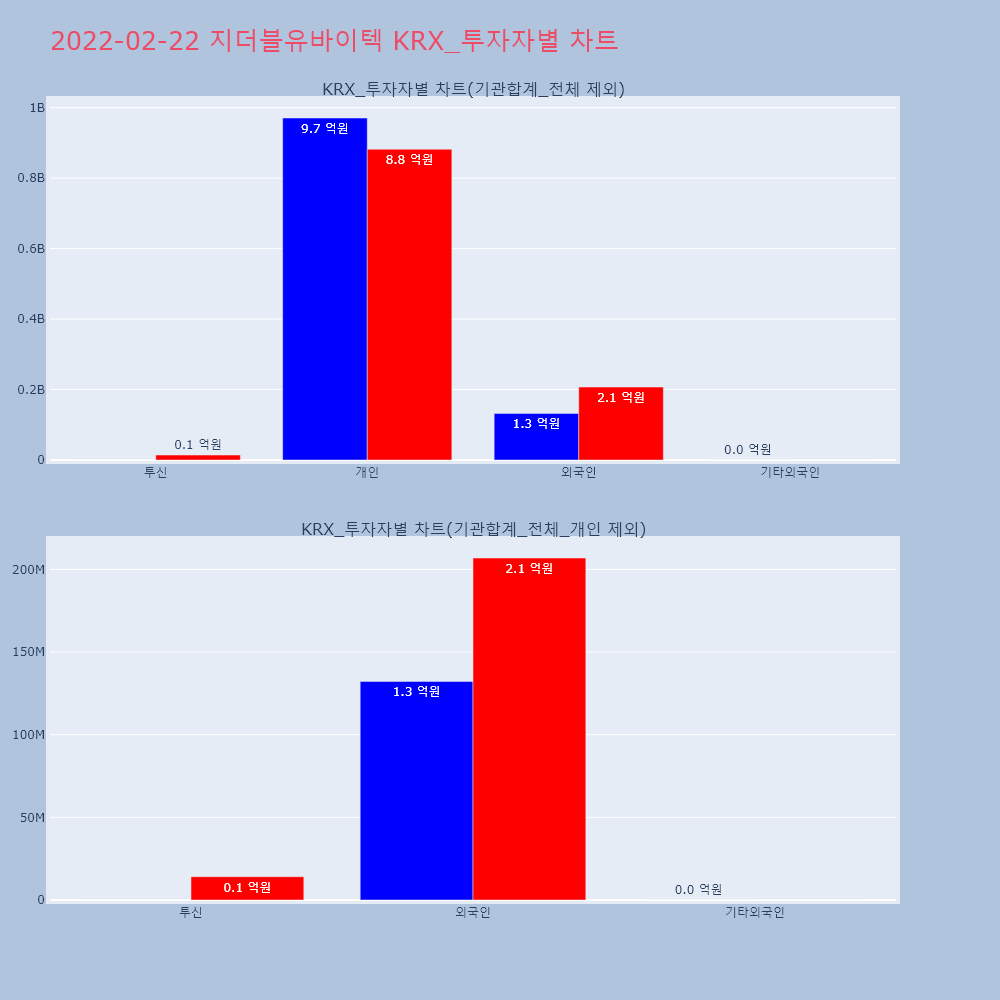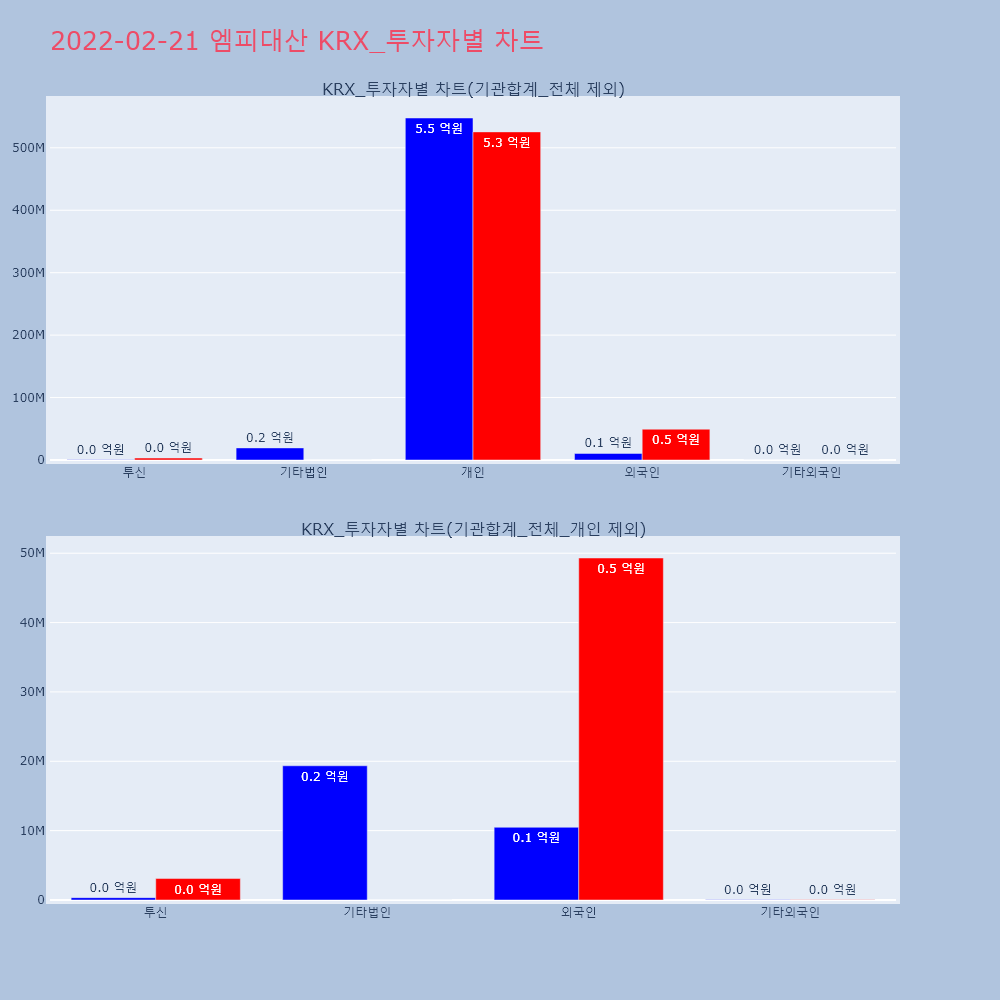 | 투자기관 | 거래량_매도 | 거래량_매수 | 거래량_순매수 | 거래대금_매도 | 거래대금_매수 | 거래대금_순매수 |