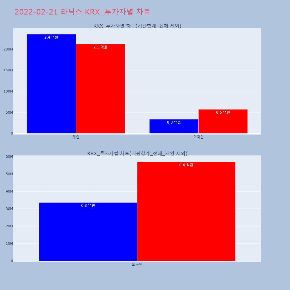 | 외국인 | 22,981 | 10,527 | -12,454 | 430,319,450 | 198,787,150 | -231,532,300 |