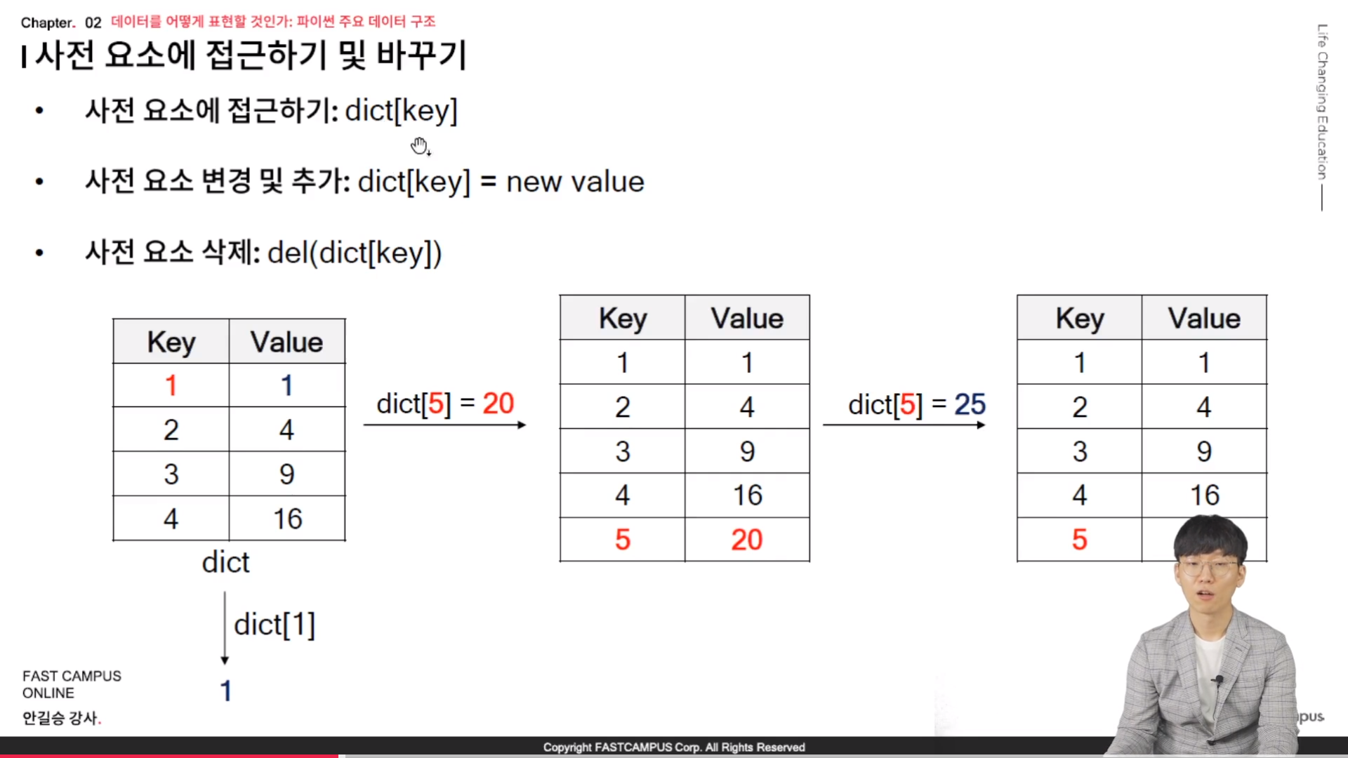 Chapter 02. 데이터를 어떻게 표현할 것인가 - 파이썬 주요 데이터 구조 - 02. 사전