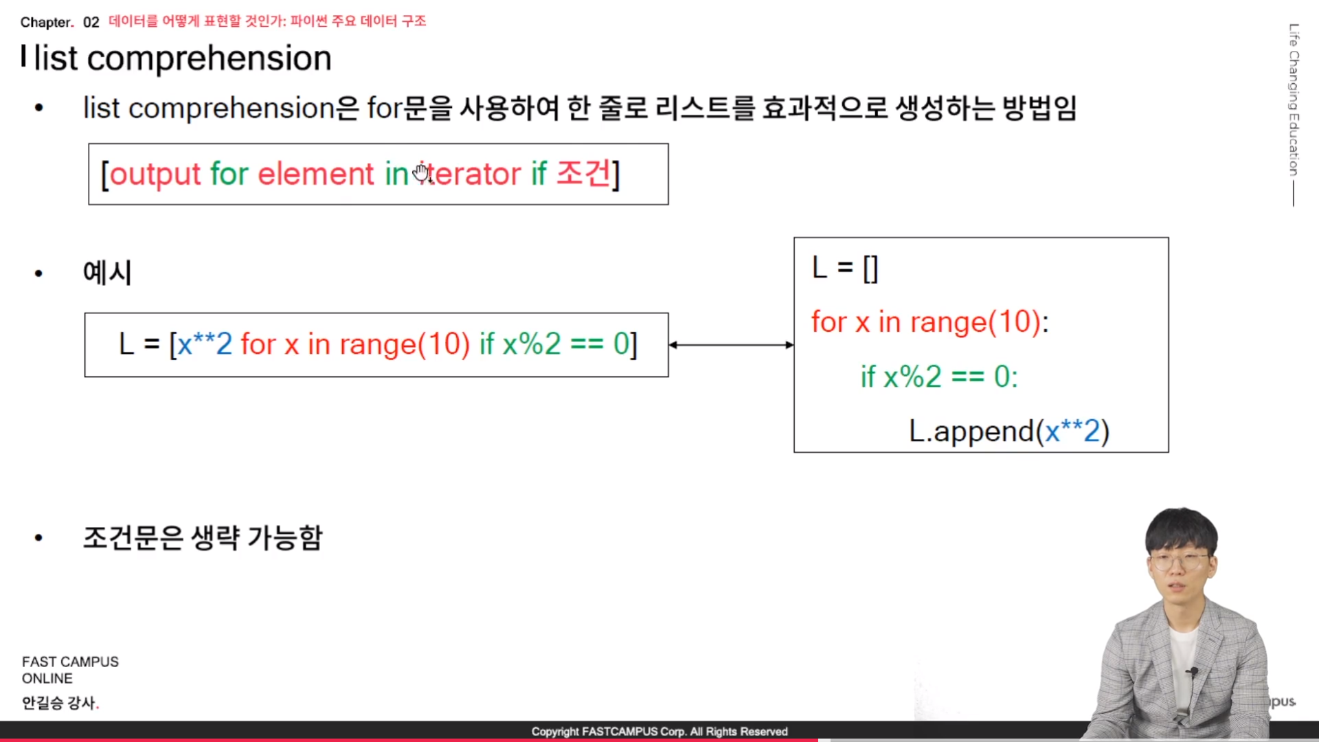 Chapter 02. 데이터를 어떻게 표현할 것인가 - 파이썬 주요 데이터 구조 - 03. 반복문과 comprehension