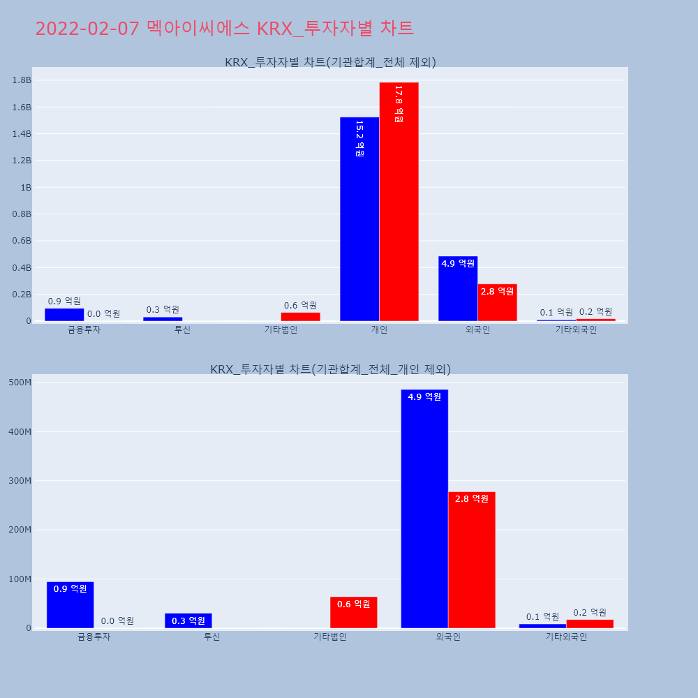 | 투자기관 | 거래량_매도 | 거래량_매수 | 거래량_순매수 | 거래대금_매도 | 거래대금_매수 | 거래대금_순매수 |