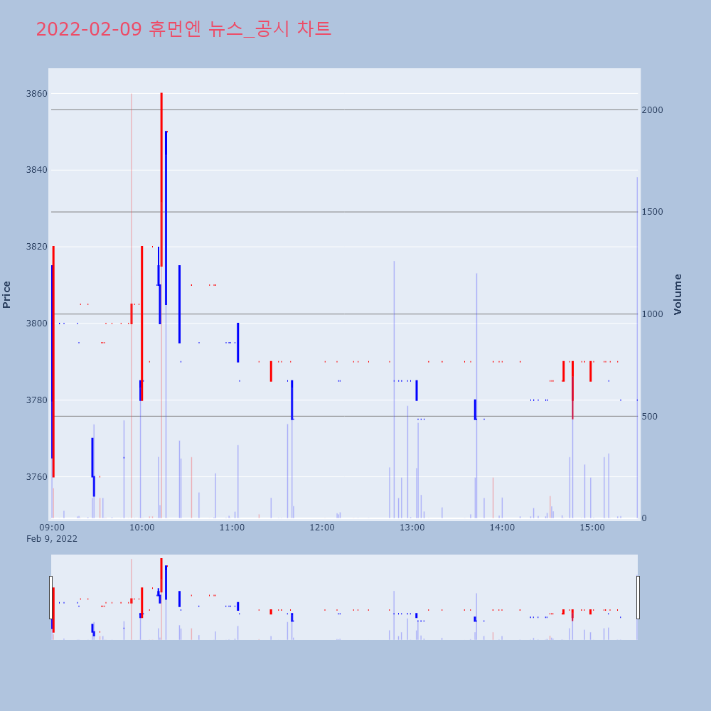 | 2022-02-08 16:12:00 | 20220208800695 | 매출액또는손익구조30%(대규모법인은15%)이상변경(자회사의 주요경영사항) |
