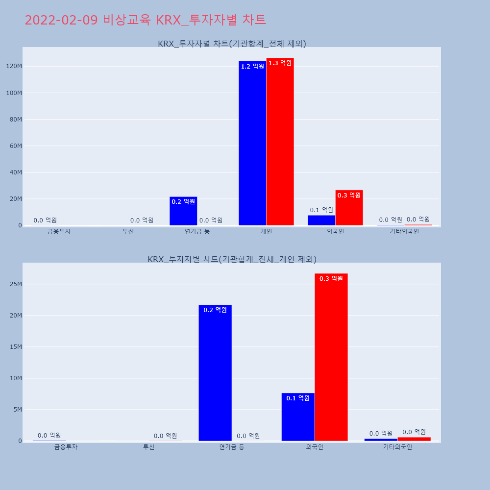 | 투자기관 | 거래량_매도 | 거래량_매수 | 거래량_순매수 | 거래대금_매도 | 거래대금_매수 | 거래대금_순매수 |