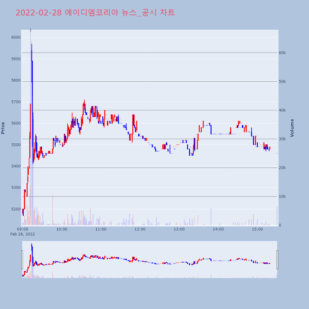 | 1 | 에이디엠코리아, +10.08% VI 발동에이디엠코리아(187660)가 VI가 발동했다. 전일 | 조선경제 | 에이디엠코리아 | 2022-02-28 09:12:10 |