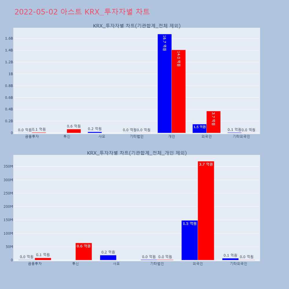| 투자기관 | 거래량_매도 | 거래량_매수 | 거래량_순매수 | 거래대금_매도 | 거래대금_매수 | 거래대금_순매수 |