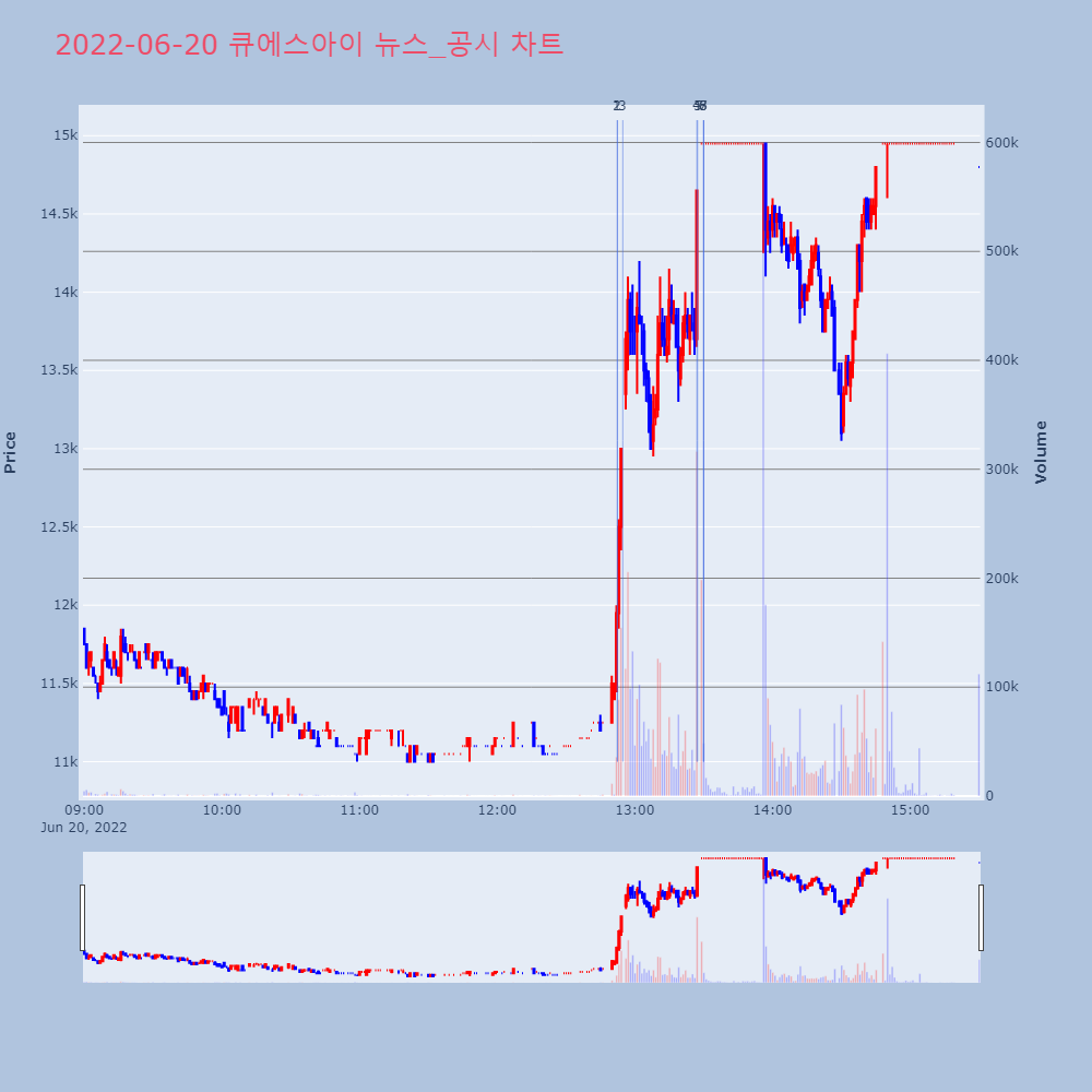 | 10 | [fnRASSI]장마감, 코스닥 상승 종목(레몬 29.9% ↑) 20일 코스닥 시장은 상승 97개, 하락 1356개, | 파이낸셜 | 큐에스아이 | 2022-06-20 15:41:24 |