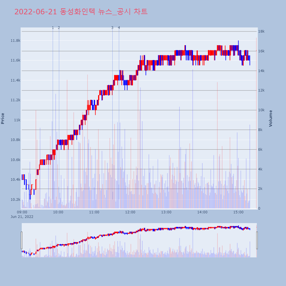 | 4 | 동성화인텍, +10.68% VI 발동동성화인텍(033500)이 VI가 발동했다. 전일 대비 | 조선경제 | 동성화인텍 | 2022-06-21 11:41:21 |