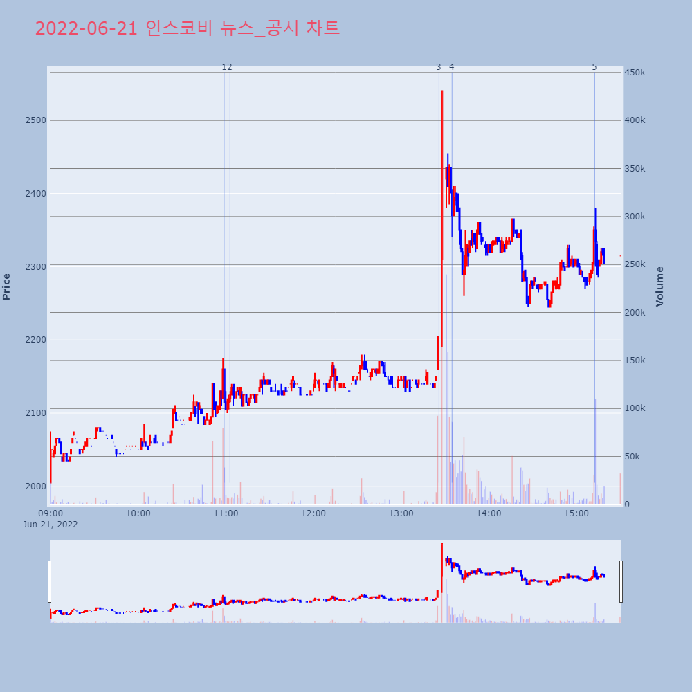 | 4 | [급등주] 인스코비, 전일비 22.74%↑…PER 167.33배[버핏연구소=신현숙 기자] 21일 13시 33분 코스피 | 버핏연구소 | 인스코비 | 2022-06-21 13:34:52 |