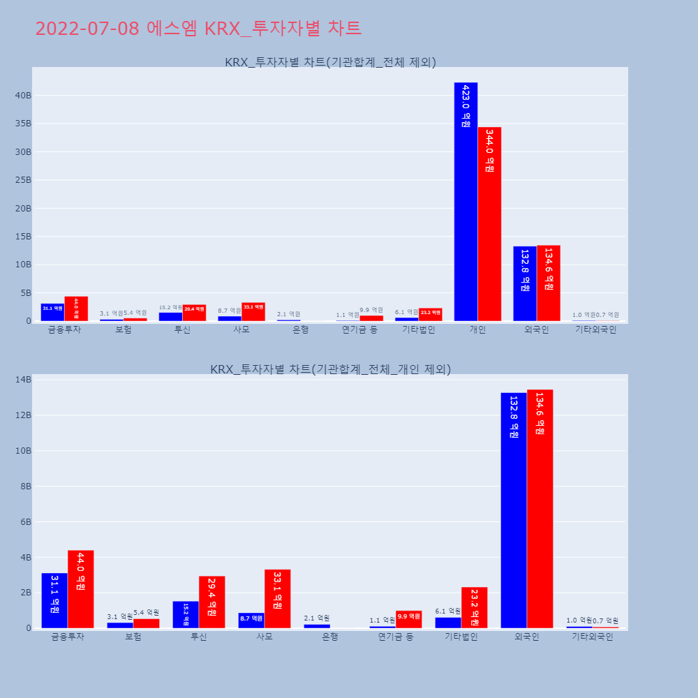 | 사모 | 19,620 | 12,408 | -7,212 | 3,241,743,000 | 2,058,060,000 | -1,183,683,000 |