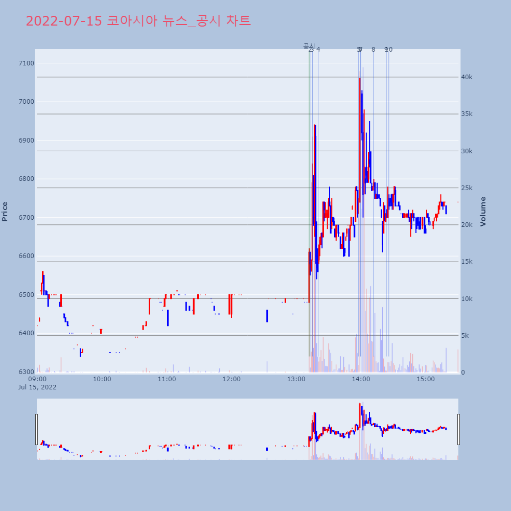 | 6 | 코아시아, +9.32% VI 발동코아시아(045970)가 VI가 발동했다. 전일 대비 | 조선경제 | 코아시아 | 2022-07-15 13:59:29 |