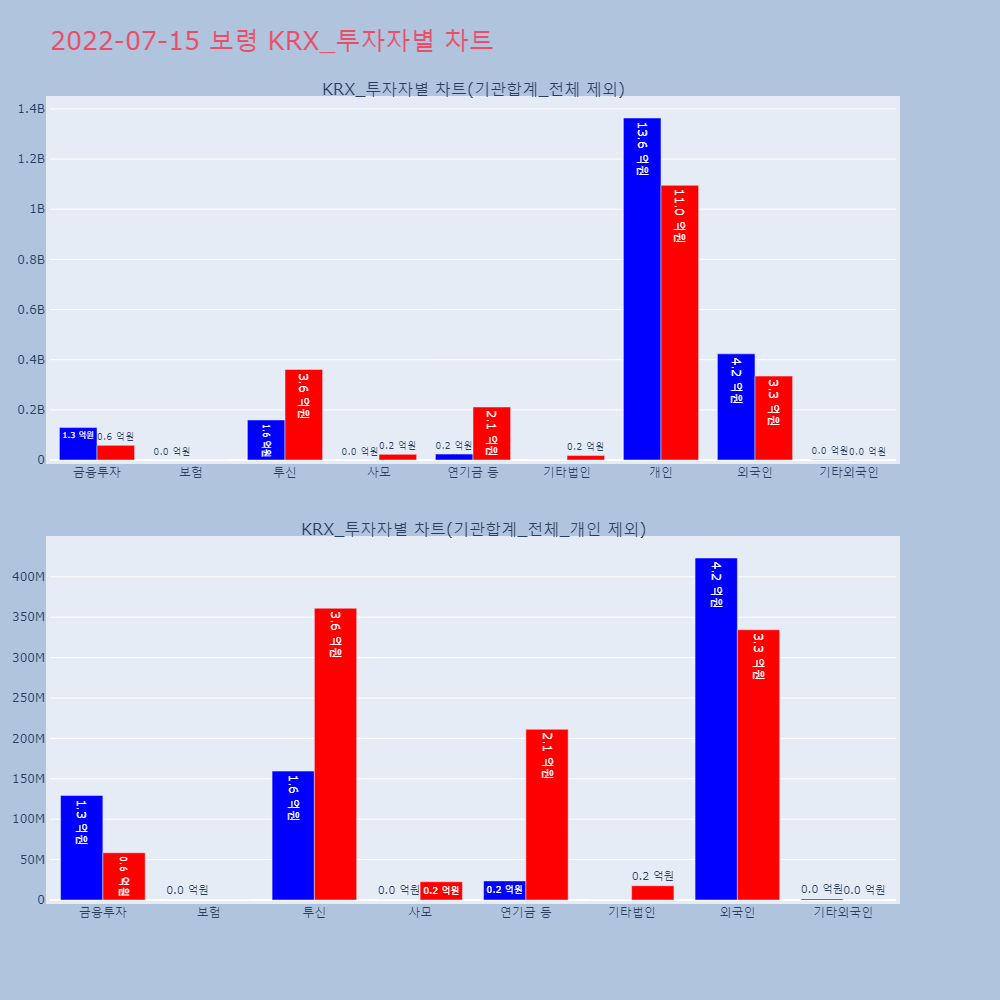 | 투자기관 | 거래량_매도 | 거래량_매수 | 거래량_순매수 | 거래대금_매도 | 거래대금_매수 | 거래대금_순매수 |