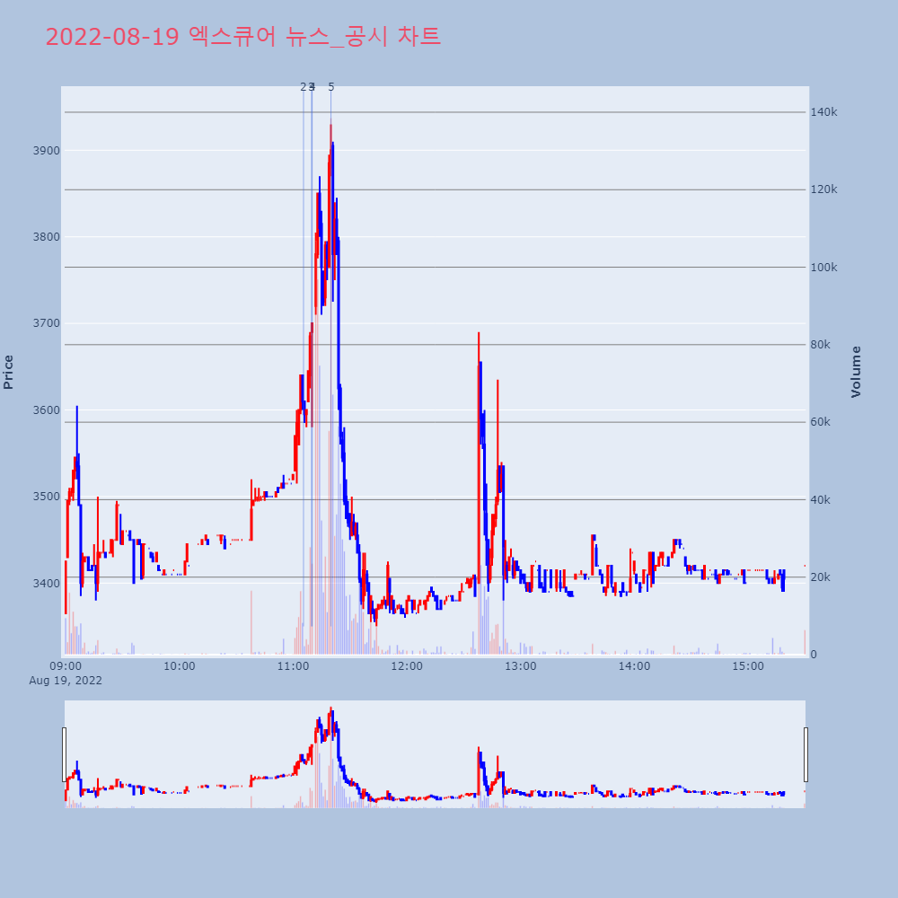 | 4 | 엑스큐어, +10.61% VI 발동엑스큐어가 VI가 발동했다. 전일 대비 10.61% 상 | 조선경제 | 엑스큐어 | 2022-08-19 11:10:06 |