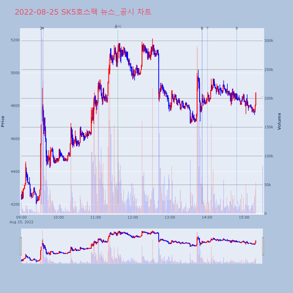 | 3 | SK5호스팩, +8.45% VI 발동SK5호스팩이 VI가 발동했다. 전일 대비 8.45% | 조선경제 | SK5호스팩 | 2022-08-25 09:32:27 |