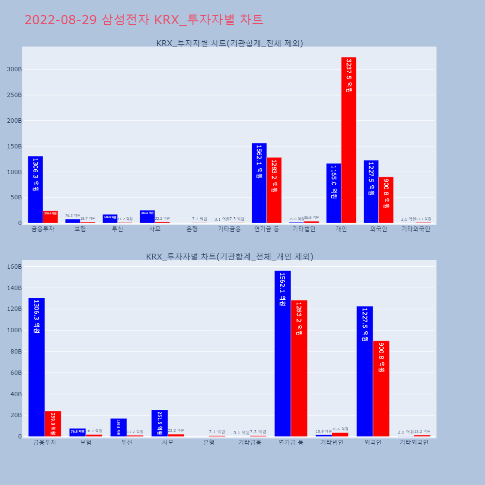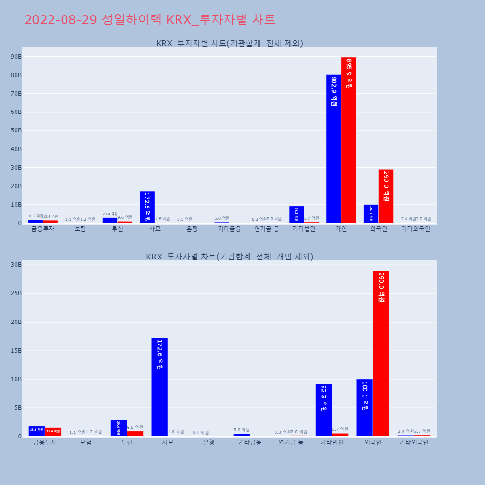 | 외국인 | 86,754 | 78,378 | -8,376 | 2,927,644,750 | 2,636,083,100 | -291,561,650 |