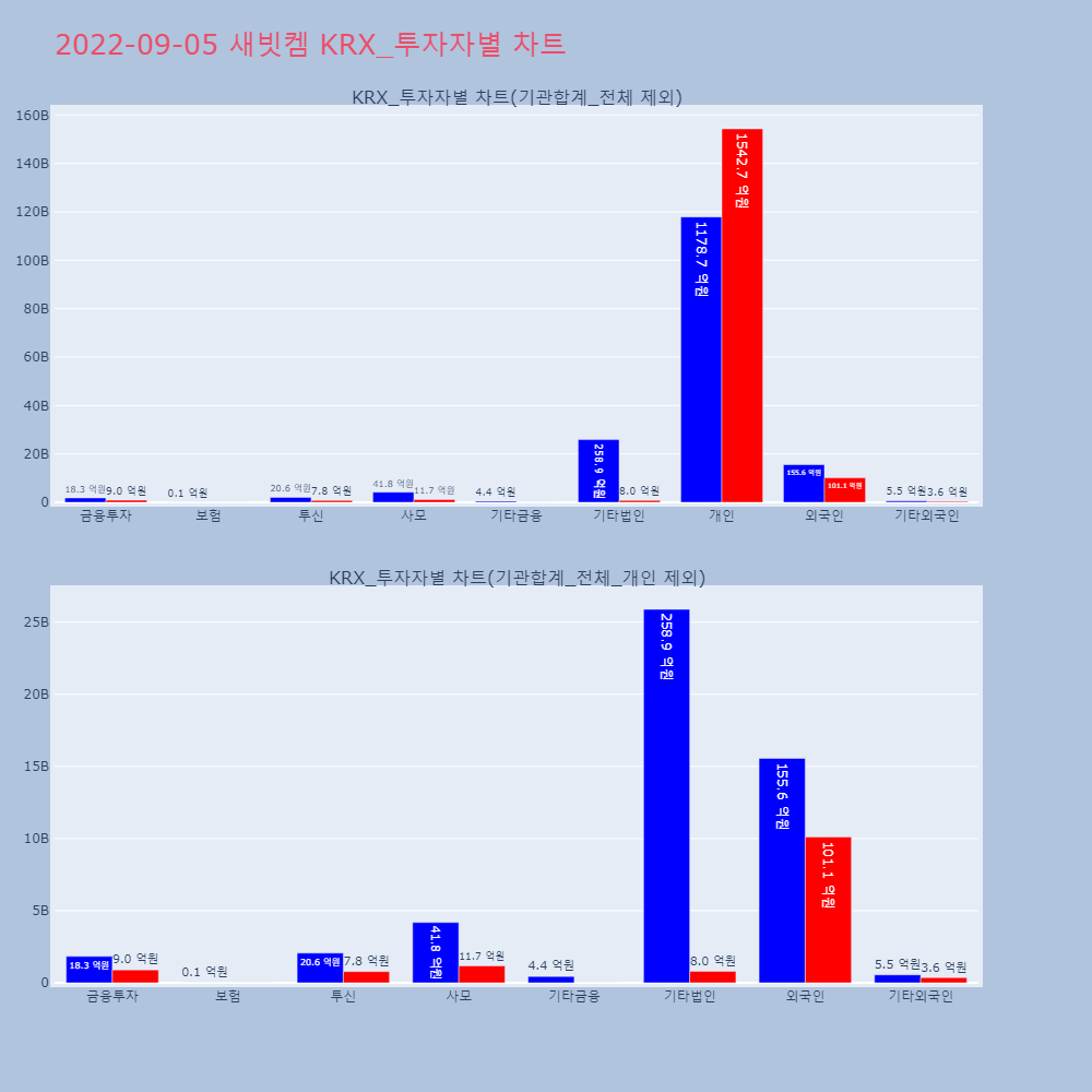 | 투자기관 | 거래량_매도 | 거래량_매수 | 거래량_순매수 | 거래대금_매도 | 거래대금_매수 | 거래대금_순매수 |