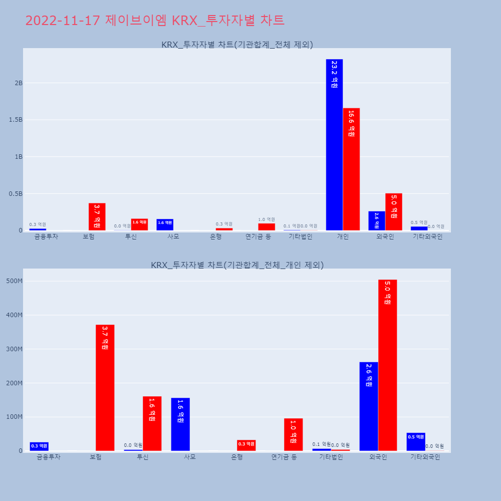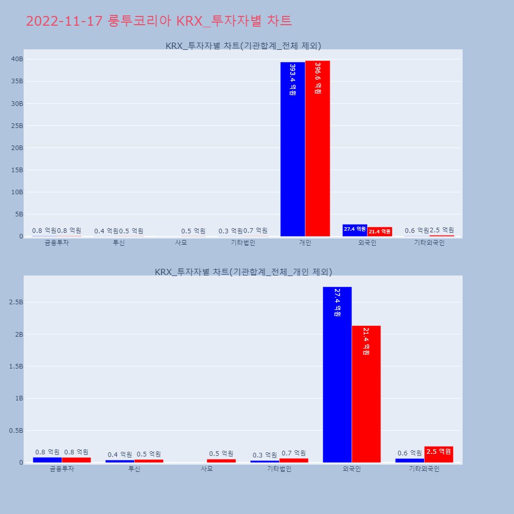 | 투자기관 | 거래량_매도 | 거래량_매수 | 거래량_순매수 | 거래대금_매도 | 거래대금_매수 | 거래대금_순매수 |
