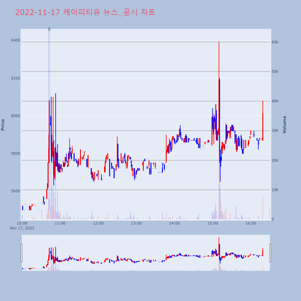 | 2 | 케이피티유, +9.76% VI 발동케이피티유가 VI가 발동했다. 전일 대비 9.76% 상 | 조선경제 | 케이피티유 | 2022-11-17 10:43:39 |