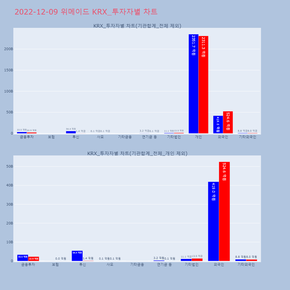 | 투자기관 | 거래량_매도 | 거래량_매수 | 거래량_순매수 | 거래대금_매도 | 거래대금_매수 | 거래대금_순매수 |