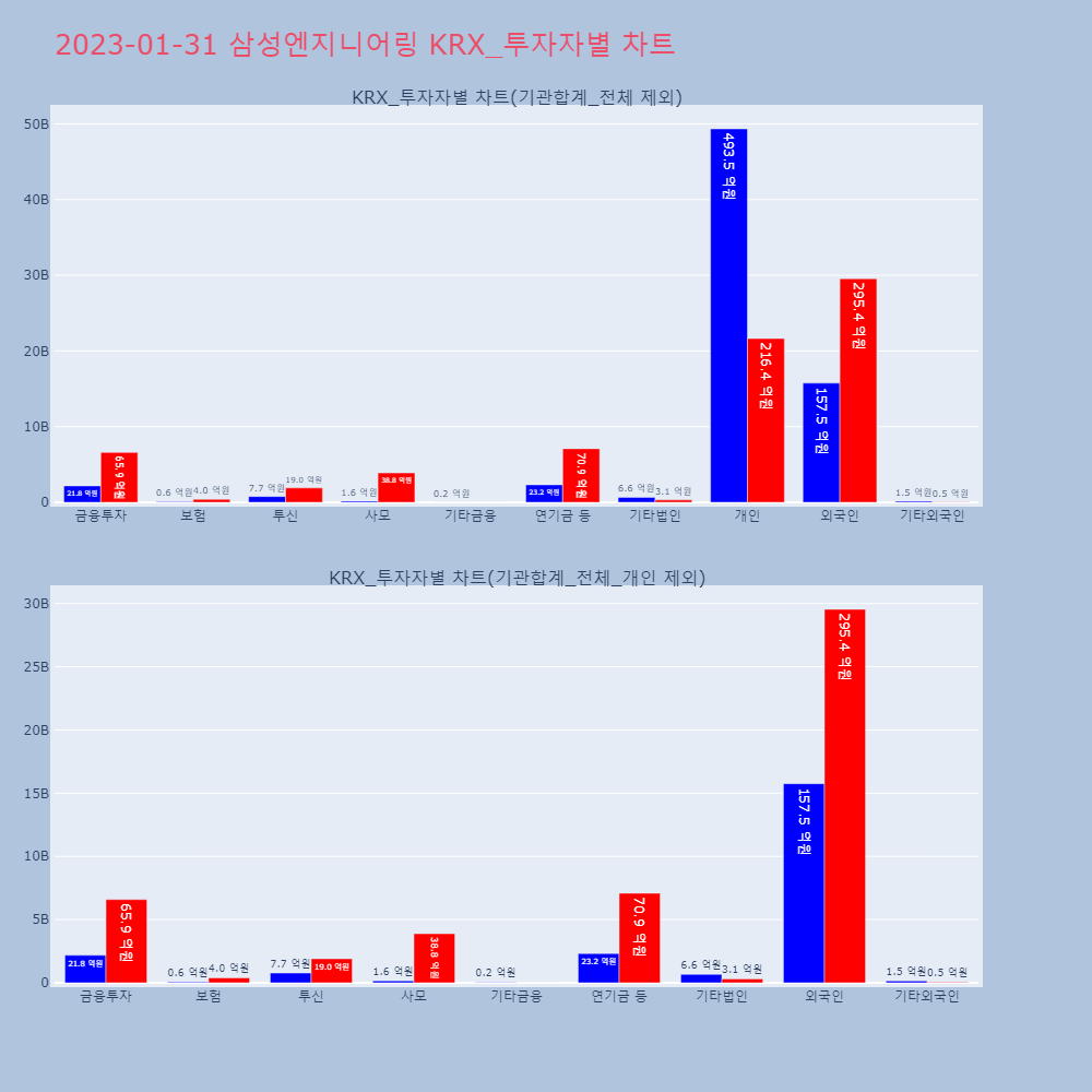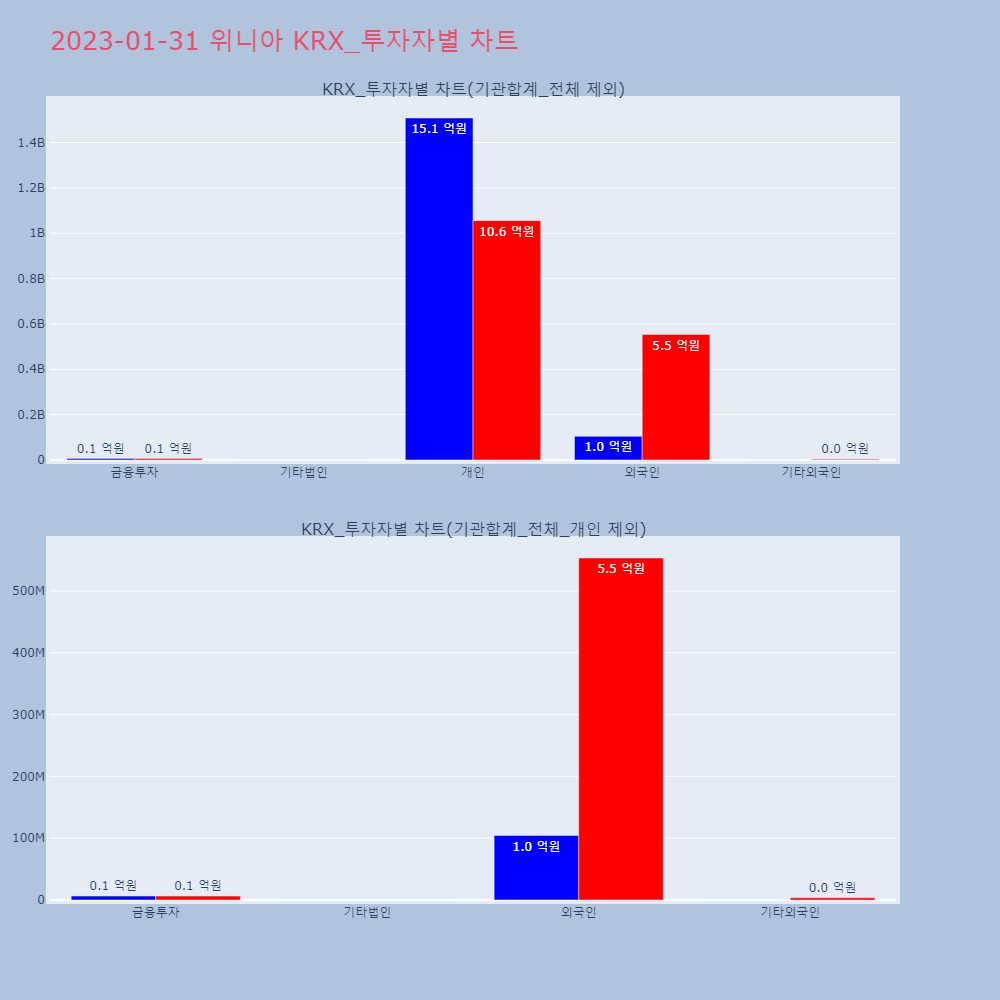 | 투자기관 | 거래량_매도 | 거래량_매수 | 거래량_순매수 | 거래대금_매도 | 거래대금_매수 | 거래대금_순매수 |
