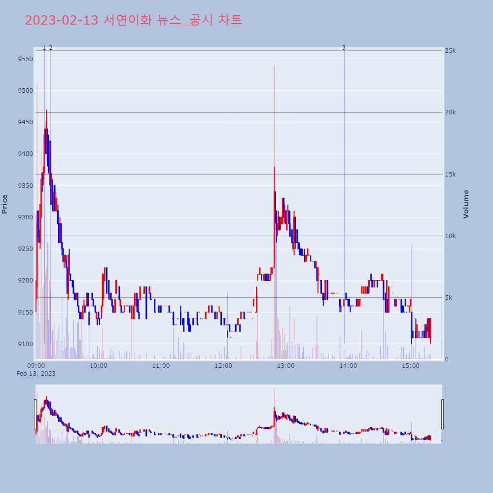 | 3 | 씨이랩, +11.68% VI 발동씨이랩이 VI가 발동했다. 전일 대비 11.68% 상승 | 조선경제 | 씨이랩 | 2023-02-13 13:18:30 |