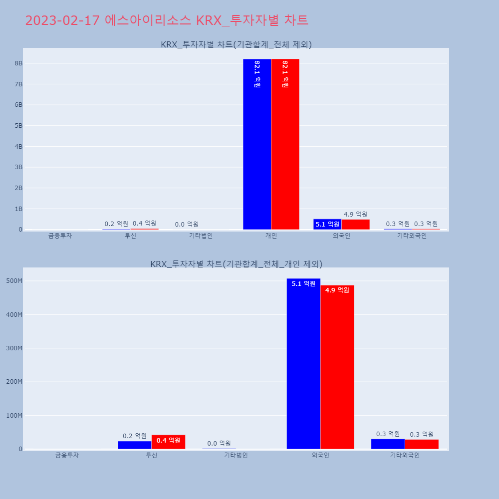 | 투자기관 | 거래량_매도 | 거래량_매수 | 거래량_순매수 | 거래대금_매도 | 거래대금_매수 | 거래대금_순매수 |
