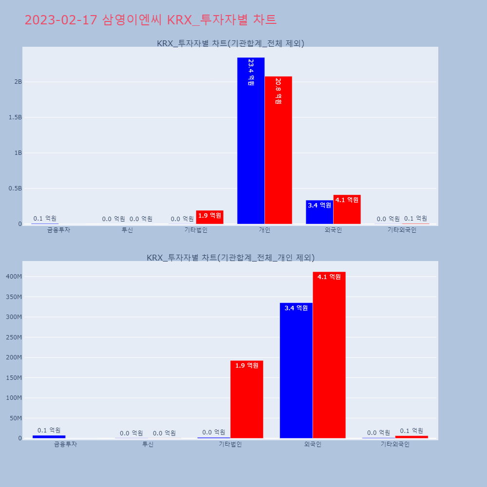 | 연기금 등 | 2,099 | 0 | -2,099 | 12,612,490 | 0 | -12,612,490 |