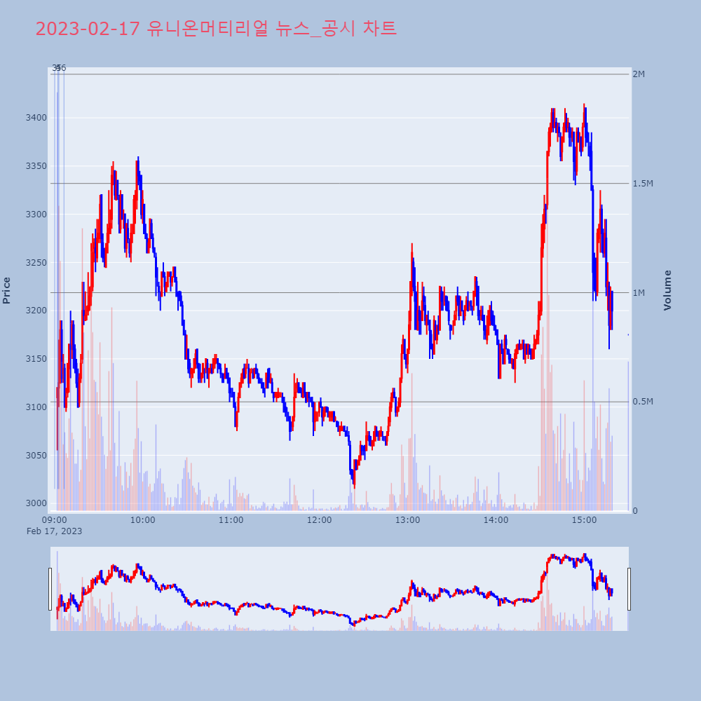 | 2 | 유니온머티리얼, 0.00% VI 발동유니온머티리얼이 VI가 발동했다. 현재 2,725원에 | 조선경제 | 유니온머티리얼 | 2023-02-17 09:00:12 |