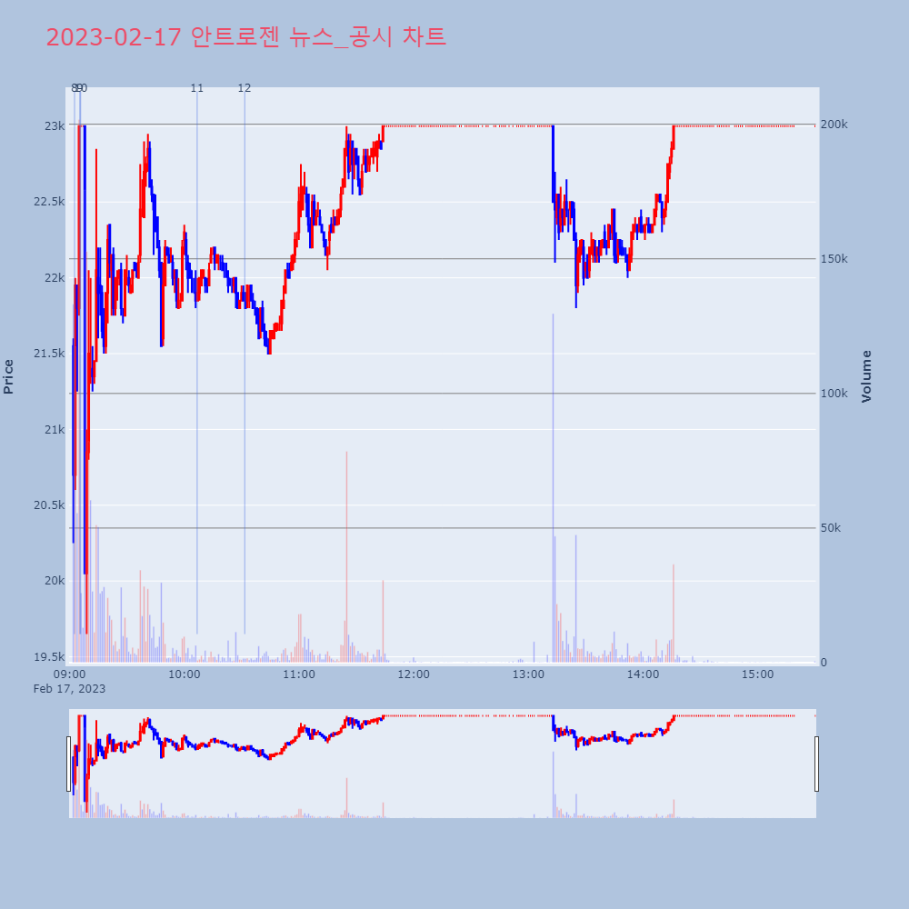 | 3 | 안트로젠, +29.93% 상한가안트로젠이 상한가를 기록했다. 전일 대비 29.93% | 조선경제 | 안트로젠 | 2023-02-16 10:23:21 |