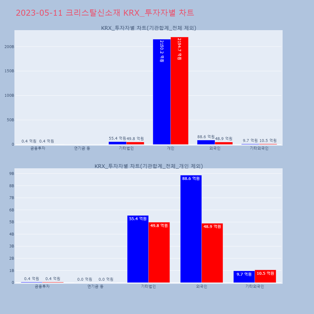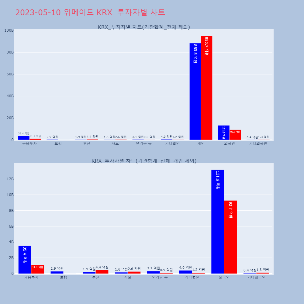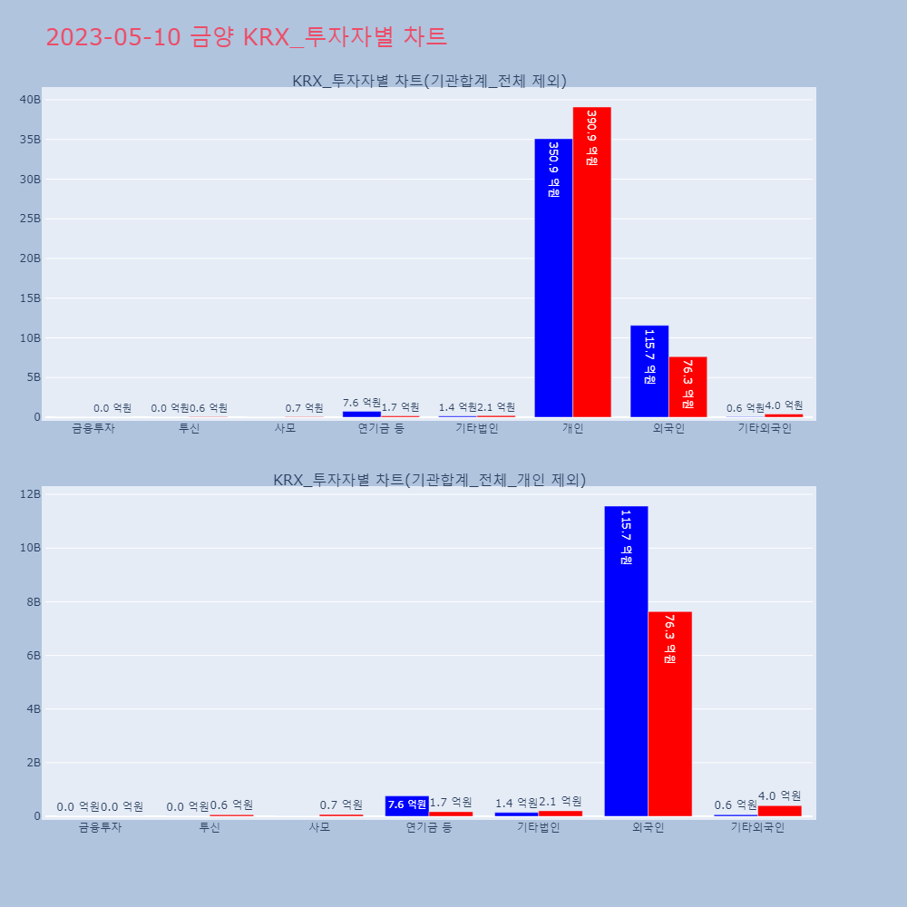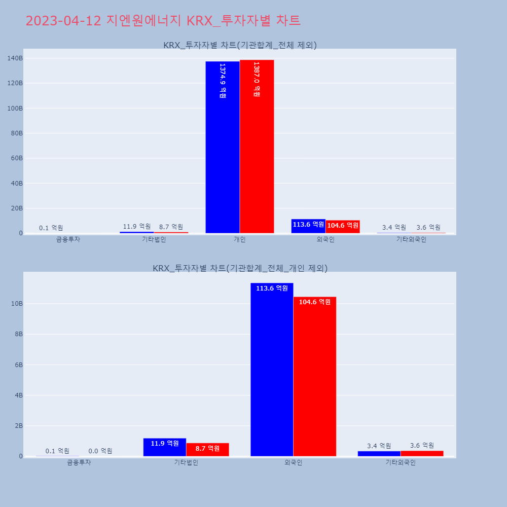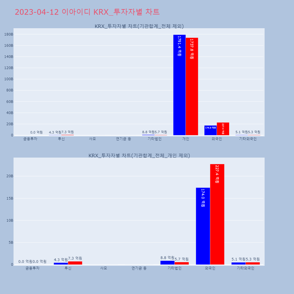 | 투자기관 | 매도량/금액(백) | 매수량/금액(백) | 순매수량/금액(백) |