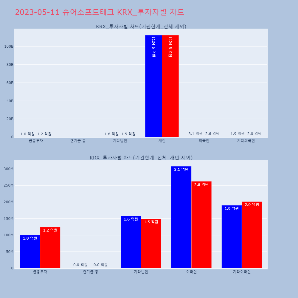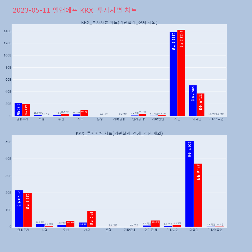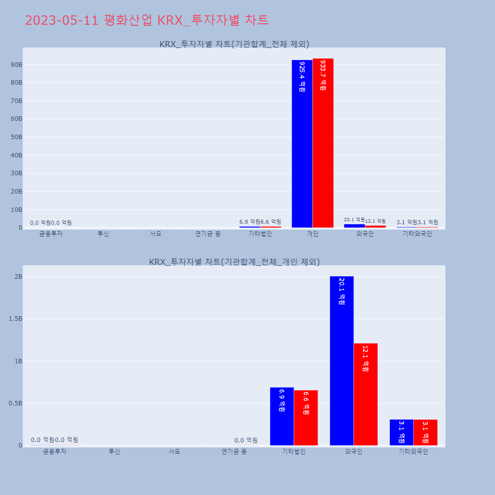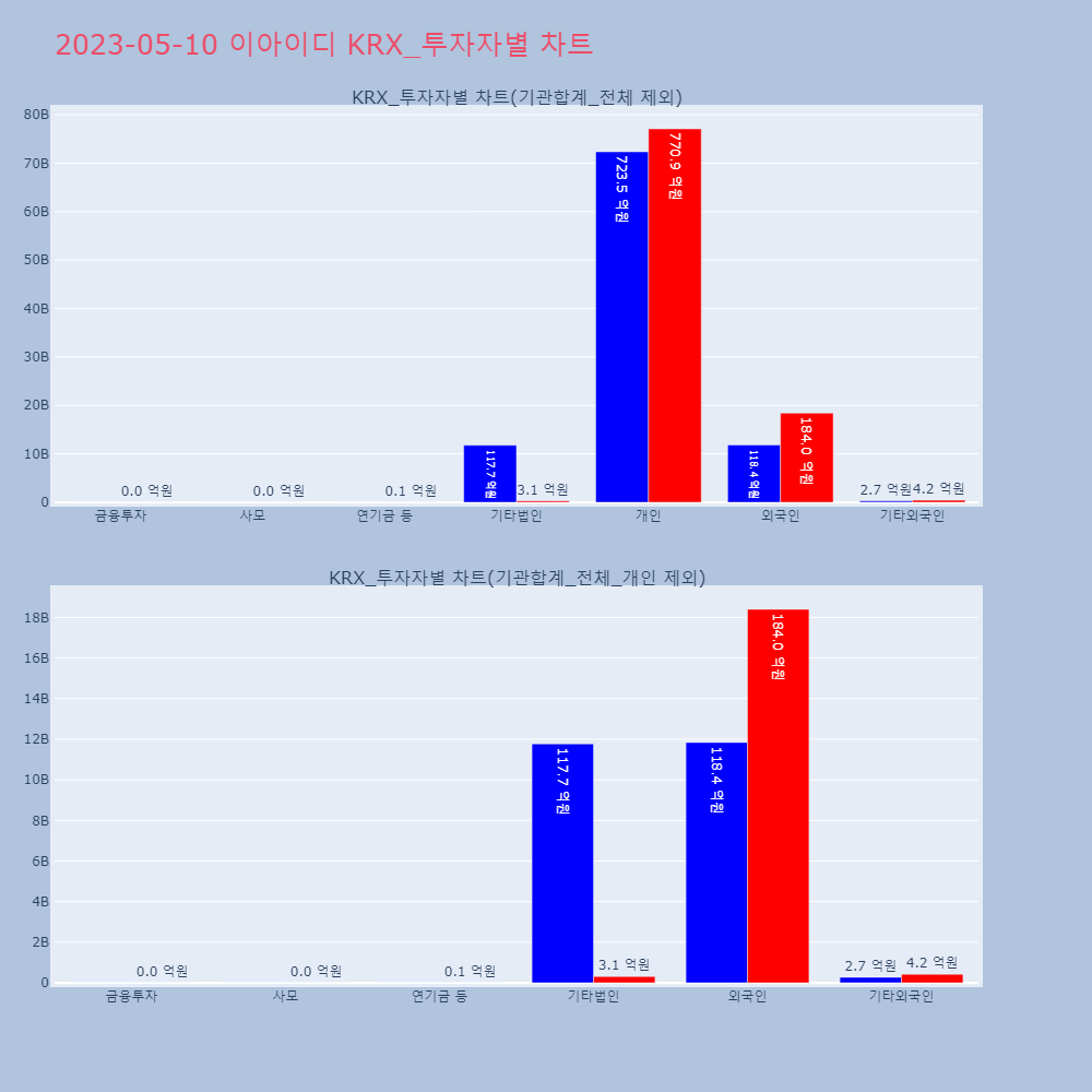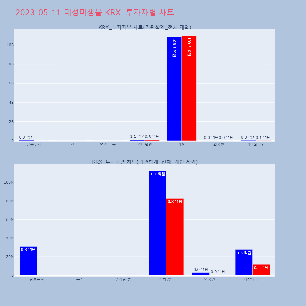 | 투자기관 | 매도량/금액(백) | 매수량/금액(백) | 순매수량/금액(백) |