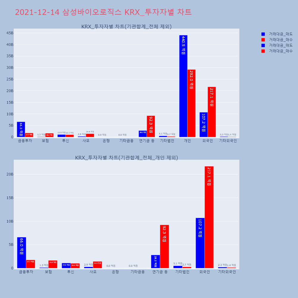 | 투자기관 | 매도량/금액(백) | 매수량/금액(백) | 순매수량/금액(백) |