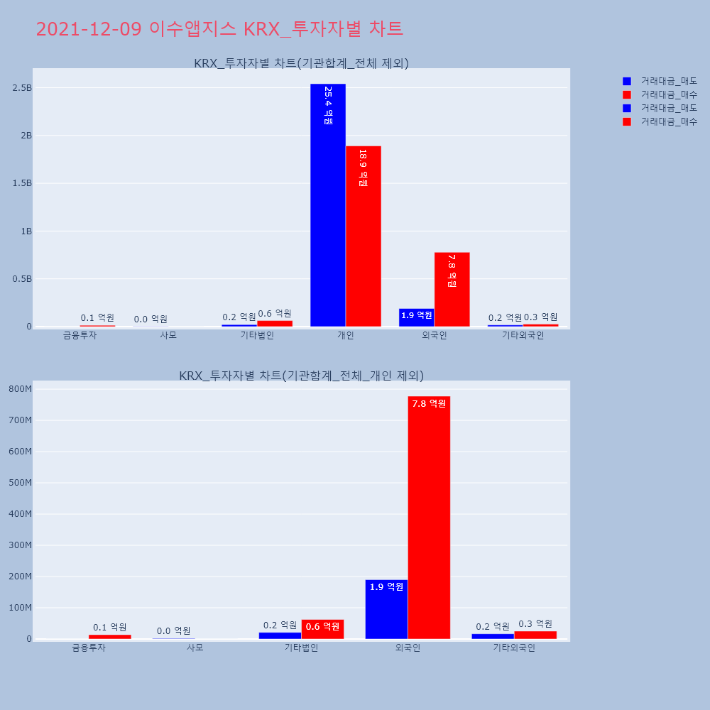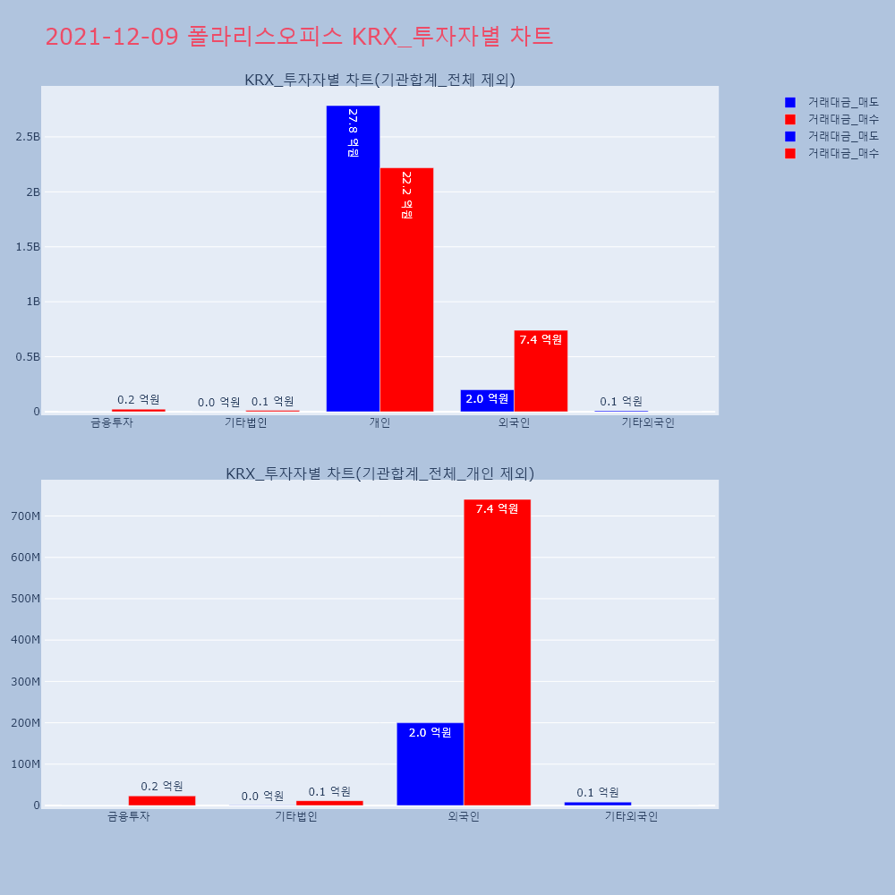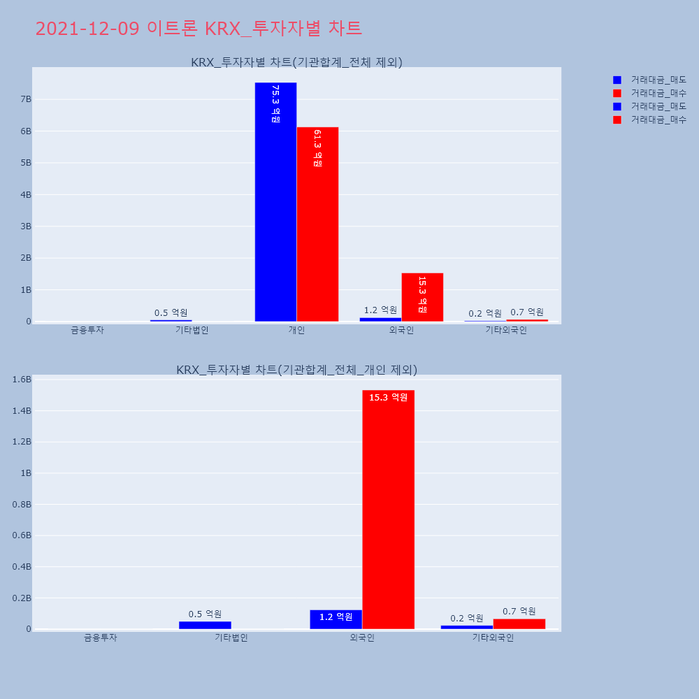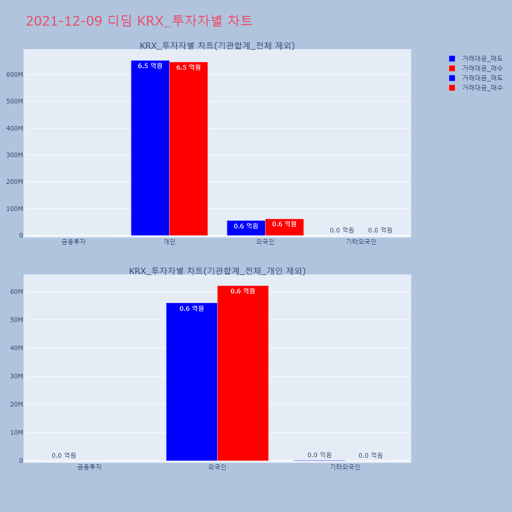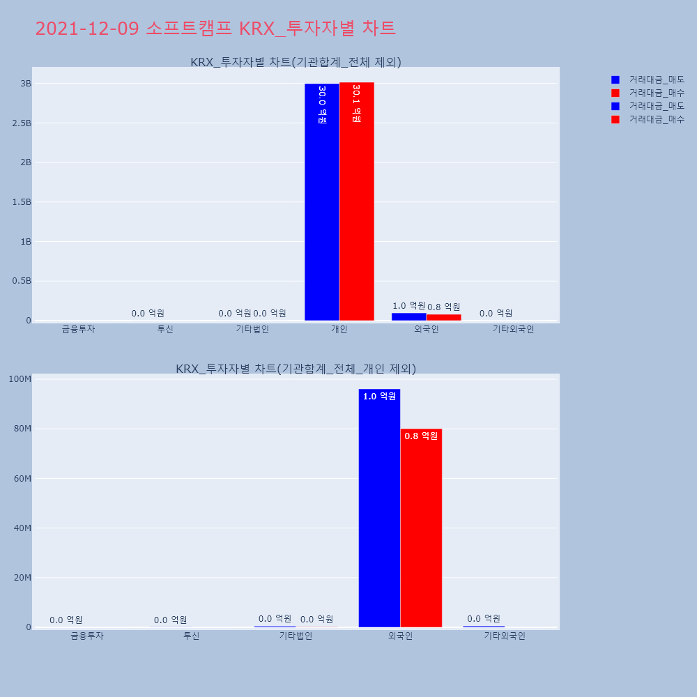 | 투자기관 | 거래량_매도 | 거래량_매수 | 거래량_순매수 | 거래대금_매도 | 거래대금_매수 | 거래대금_순매수 |