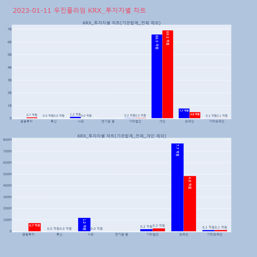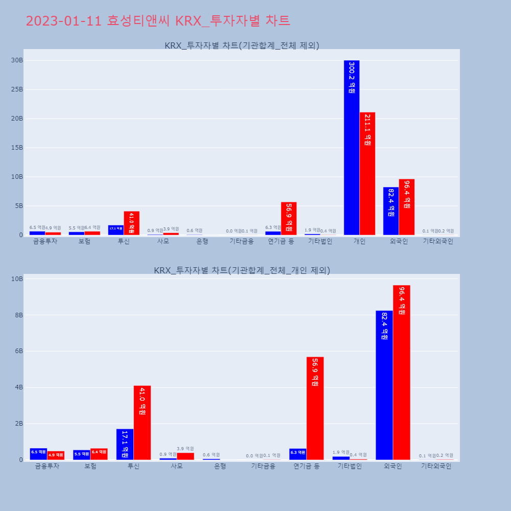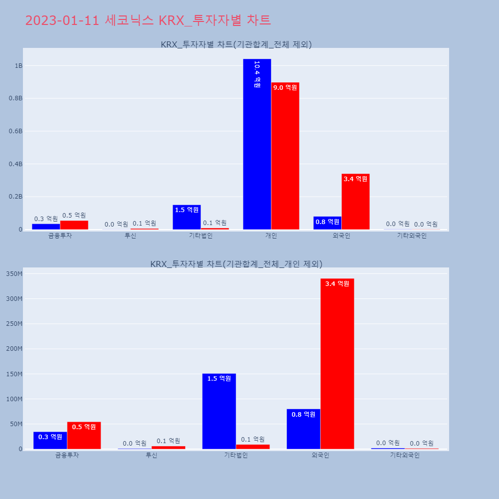 | 투자기관 | 거래량_매도 | 거래량_매수 | 거래량_순매수 | 매도(백만) | 매수(백만) | 순매수(백만) |