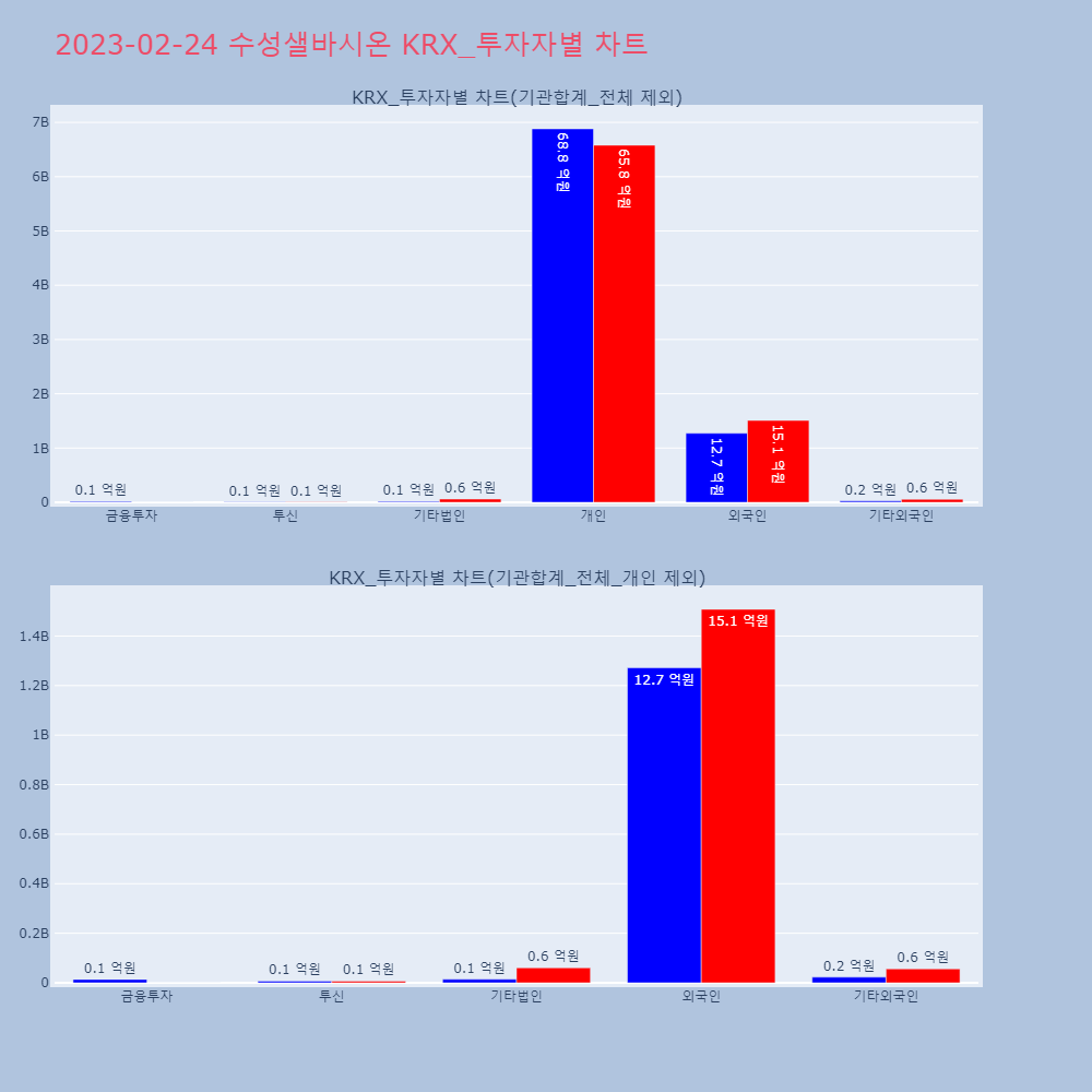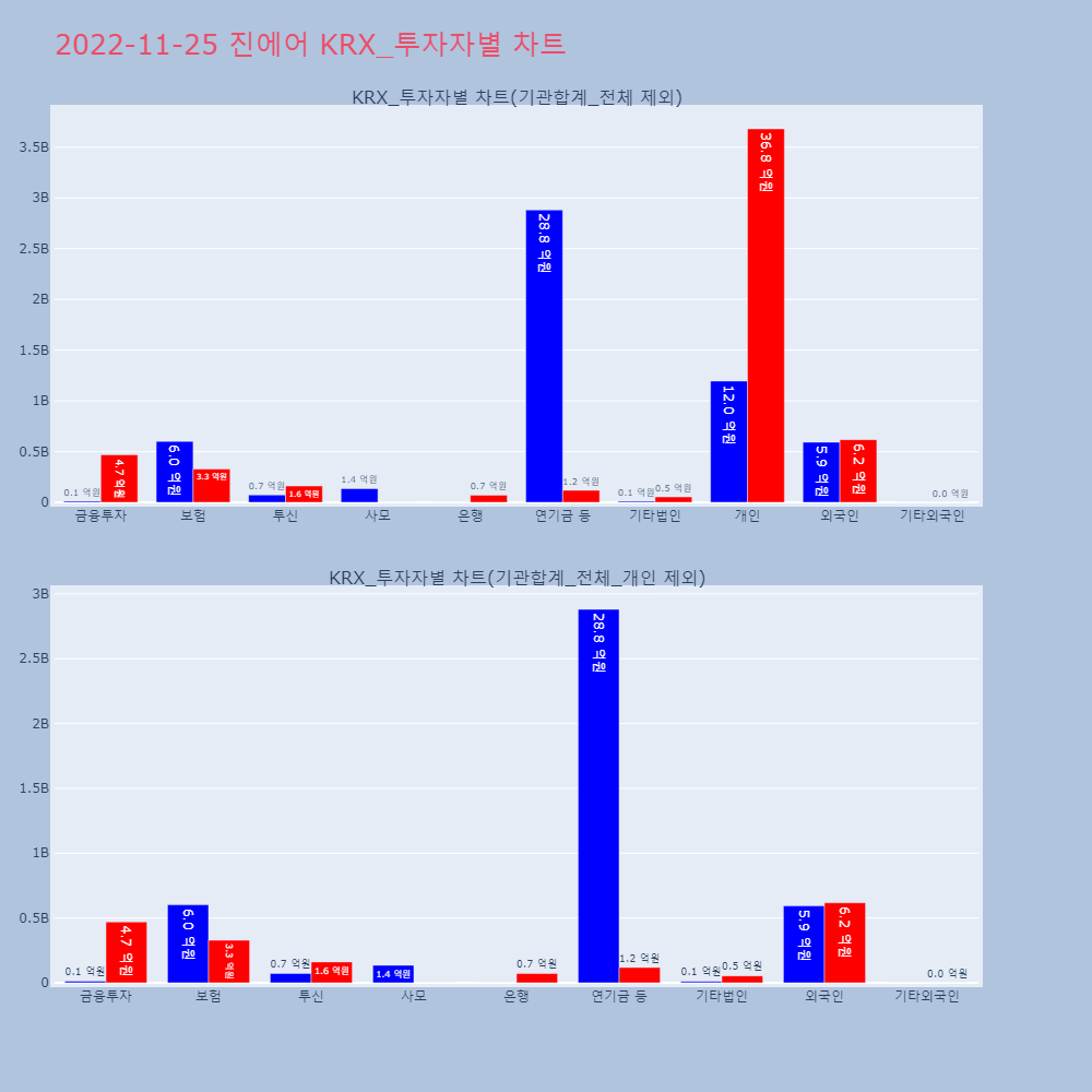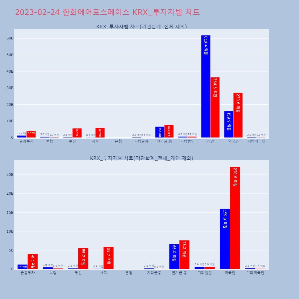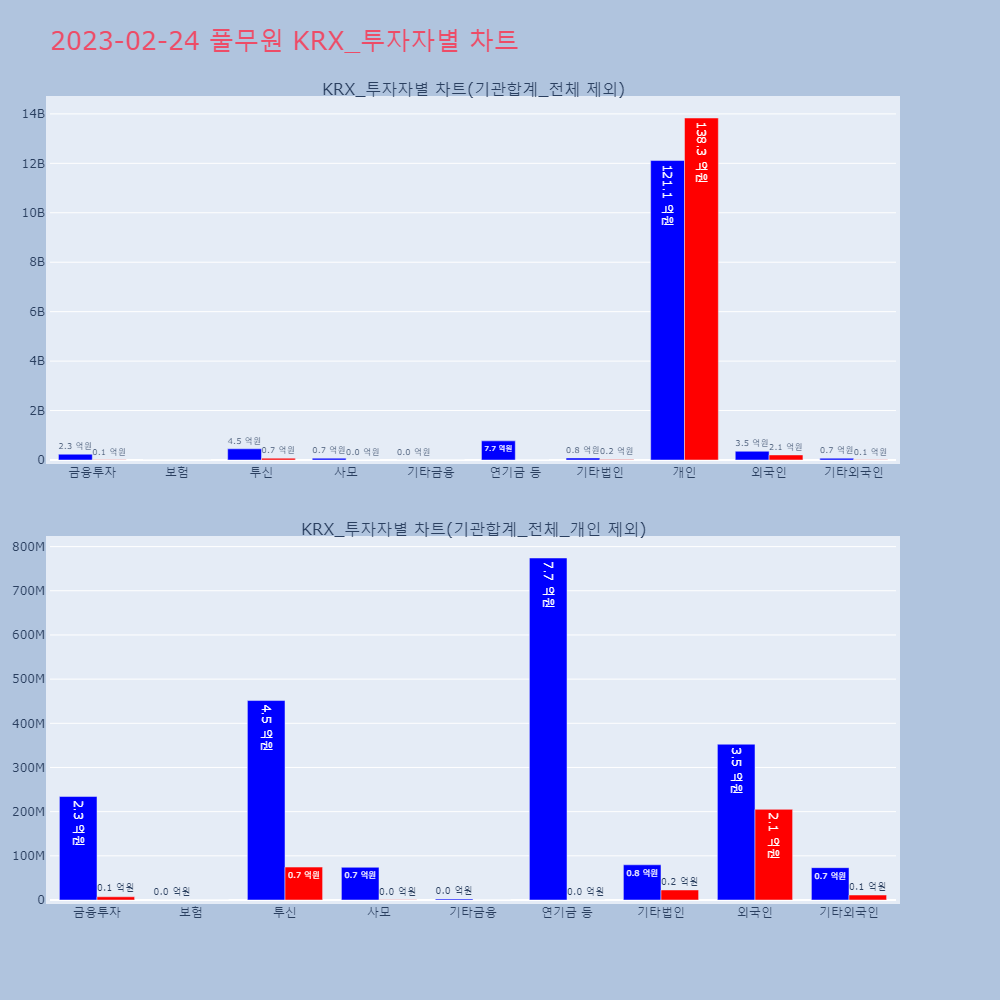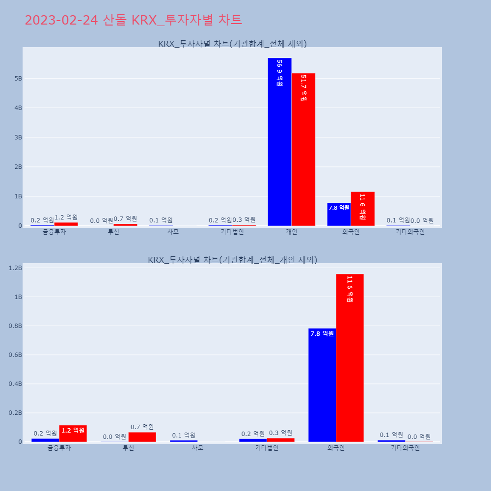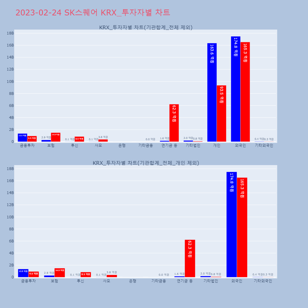 | 투자기관 | 매도량/금액(백) | 매수량/금액(백) | 순매수량/금액(백) |