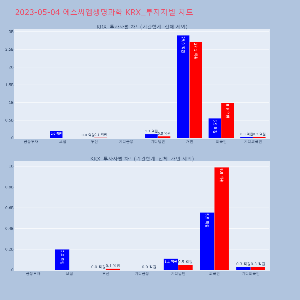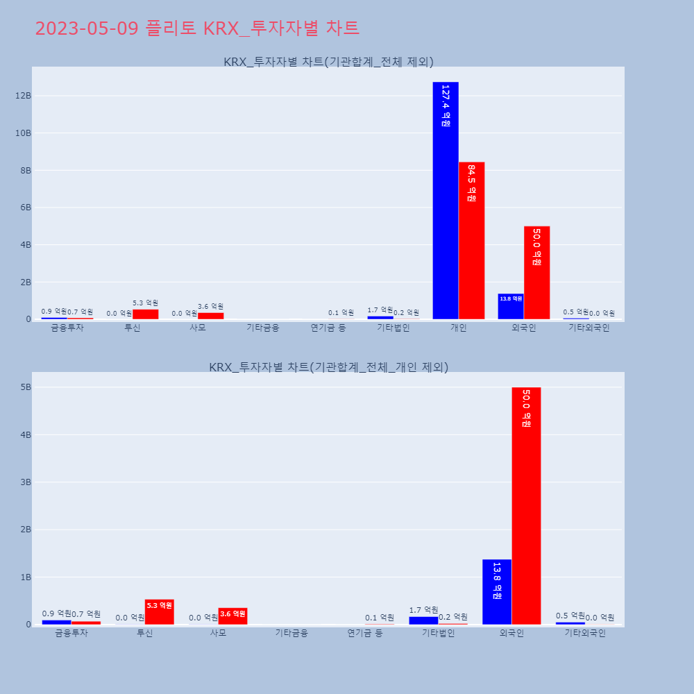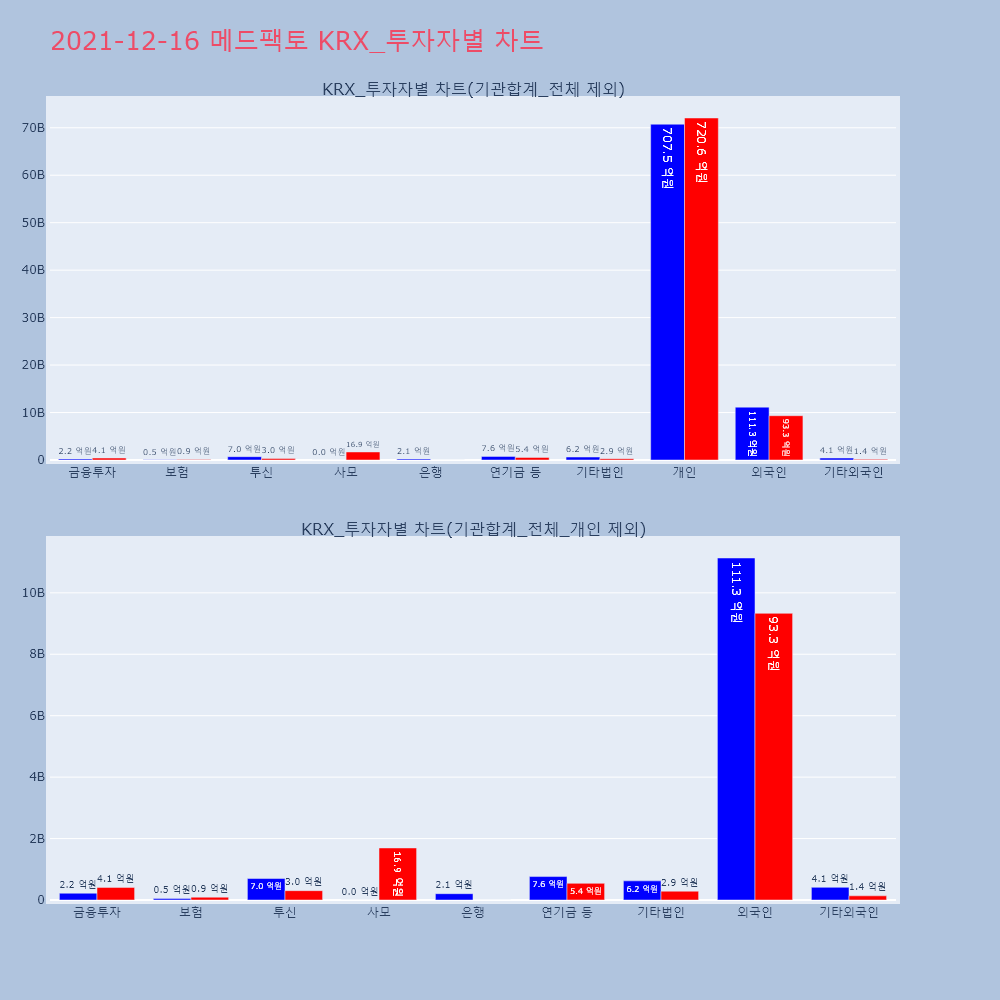 | 투자기관 | 매도량/금액(백) | 매수량/금액(백) | 순매수량/금액(백) |
