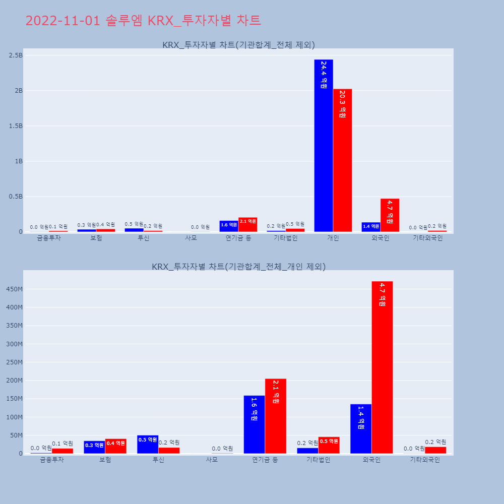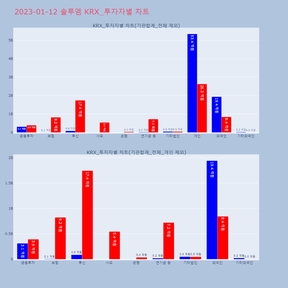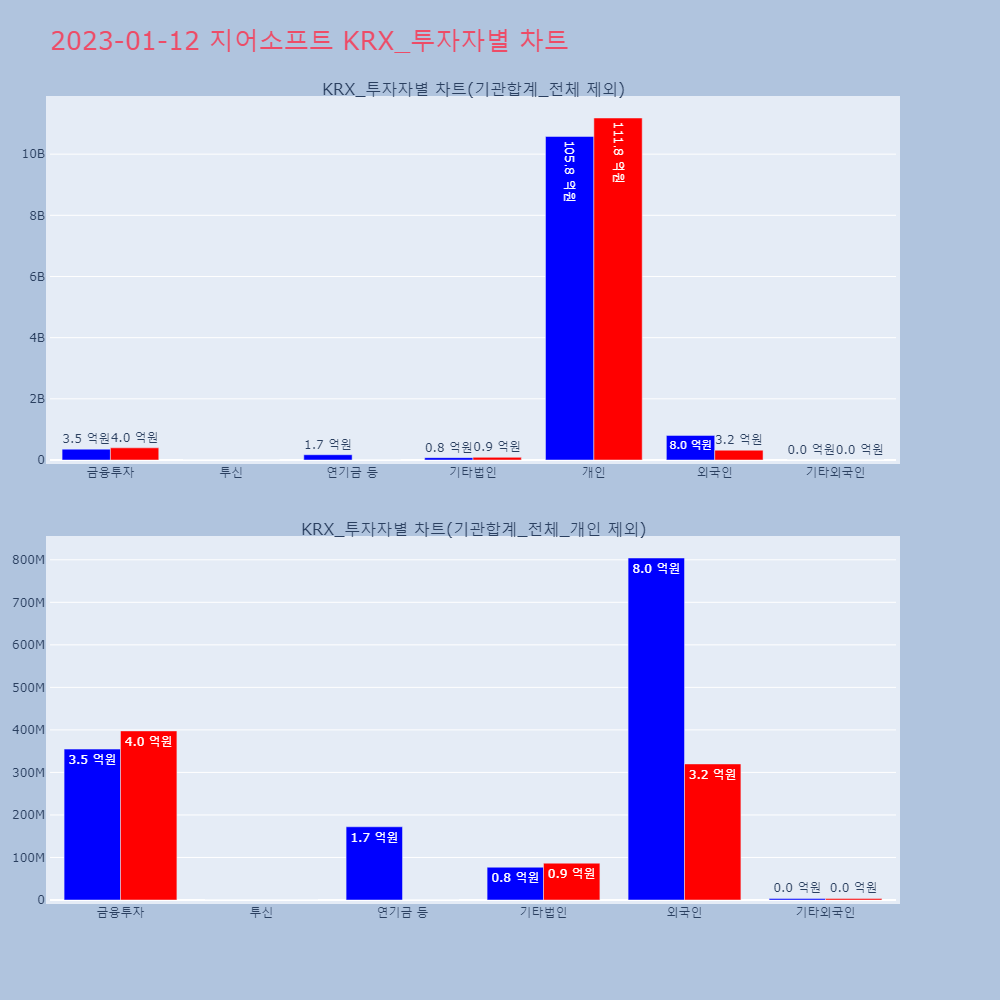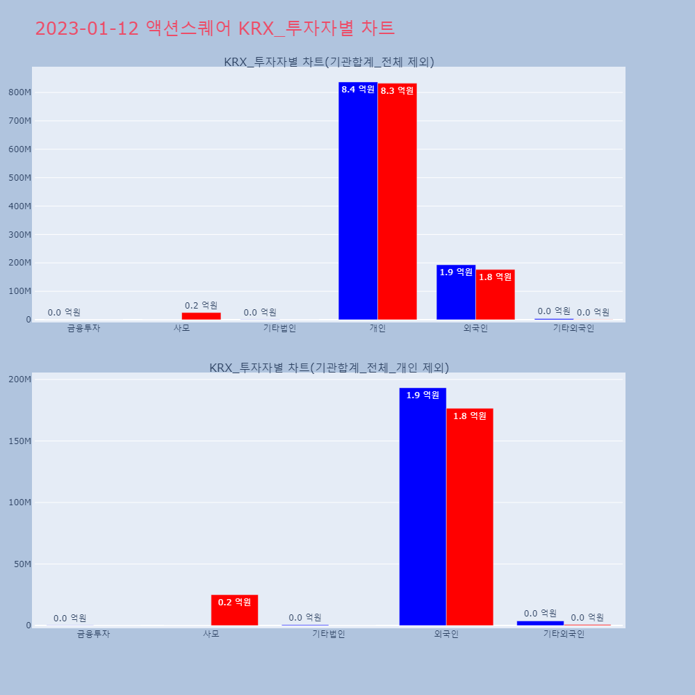 | 투자기관 | 매도량/금액(백) | 매수량/금액(백) | 순매수량/금액(백) |
