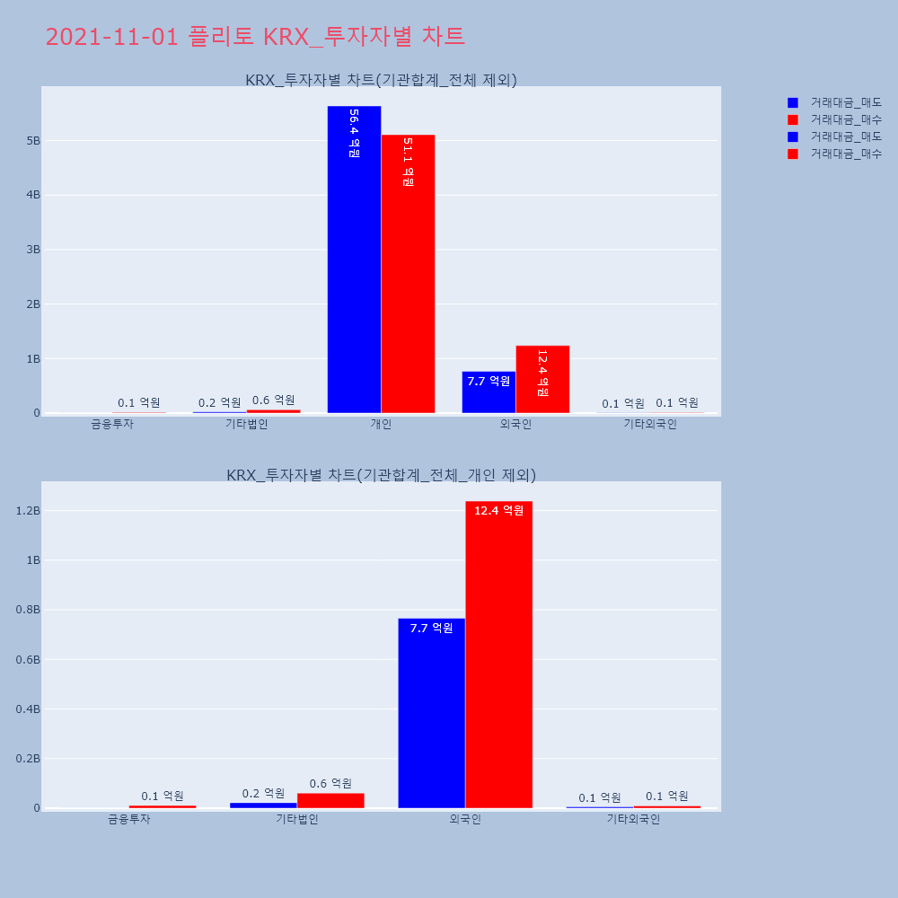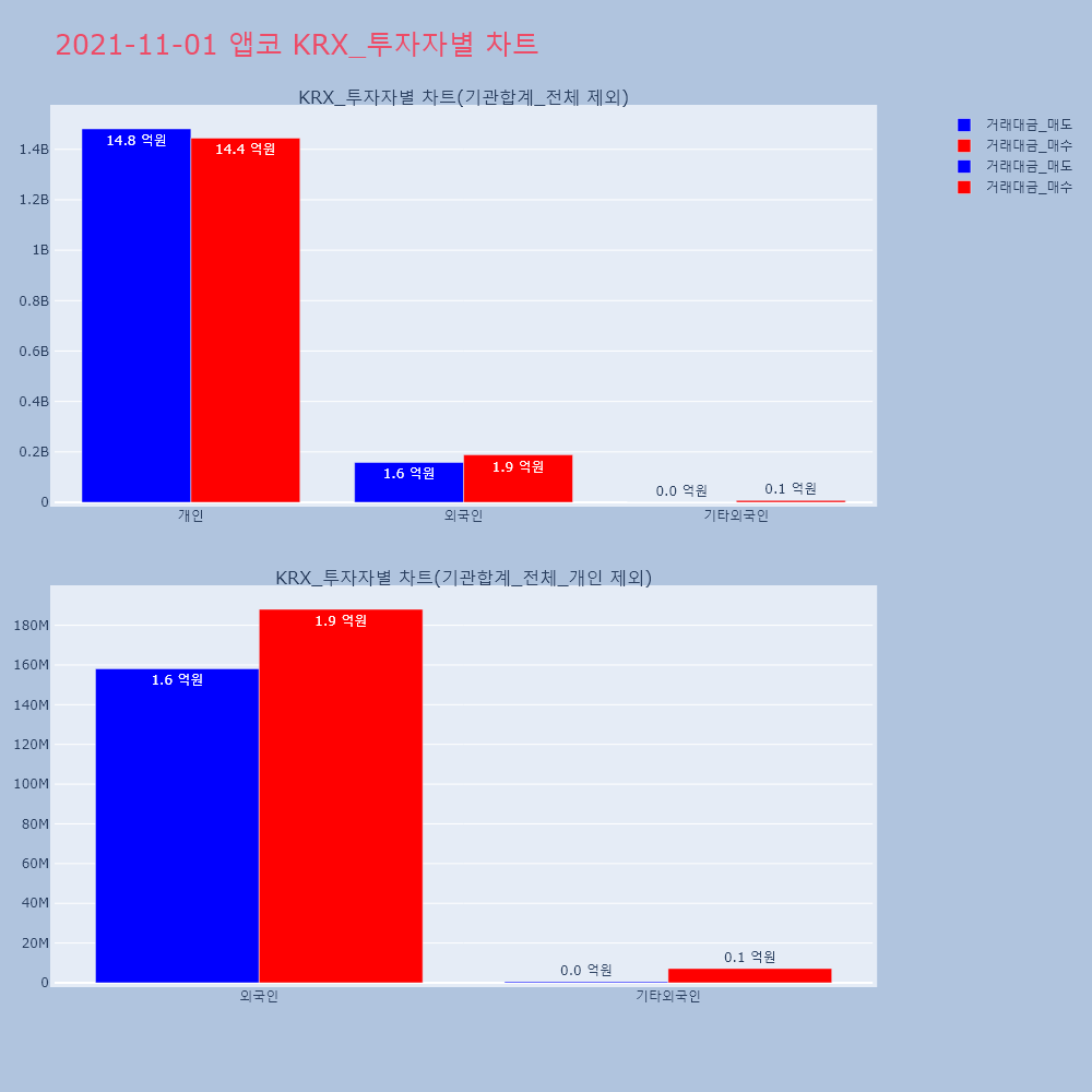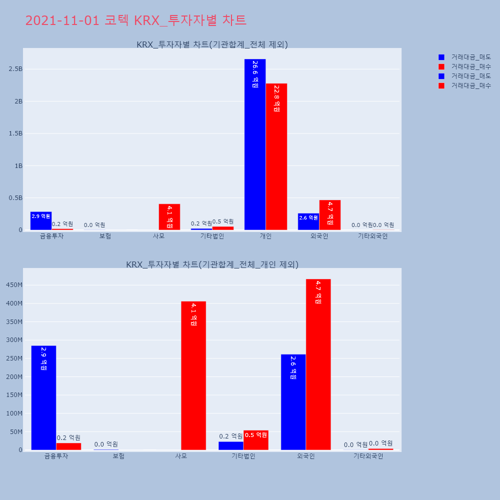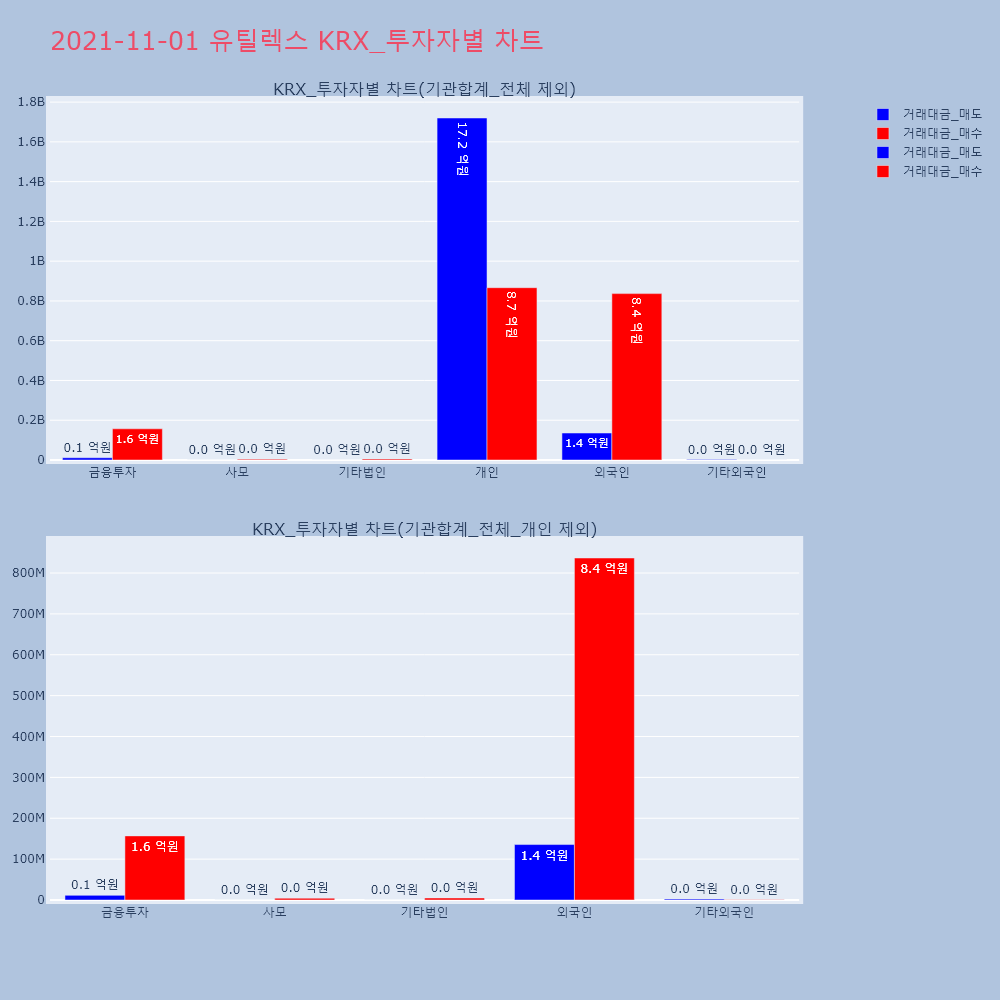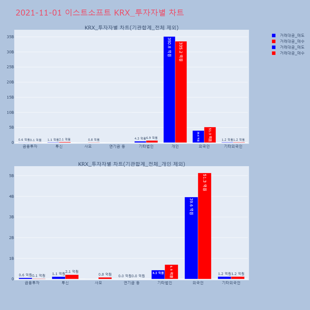 | 투자기관 | 거래량_매도 | 거래량_매수 | 거래량_순매수 | 거래대금_매도 | 거래대금_매수 | 거래대금_순매수 |