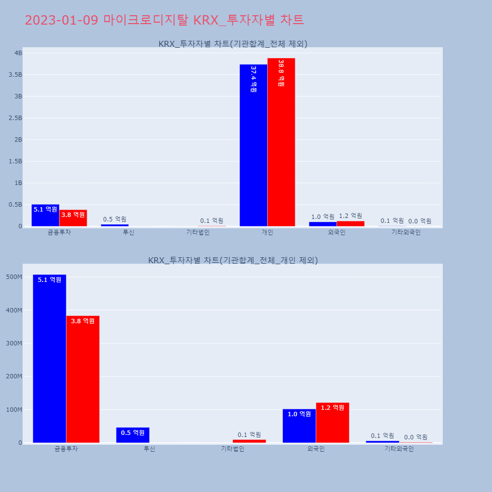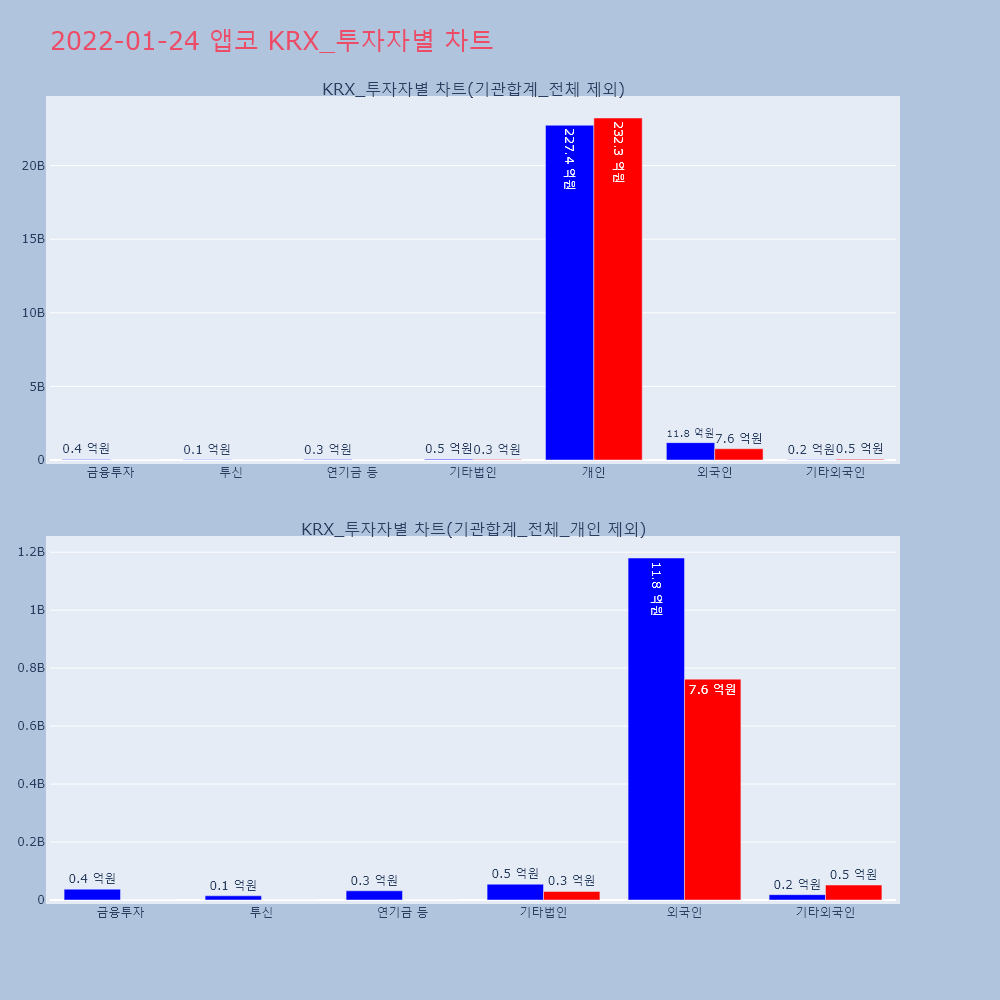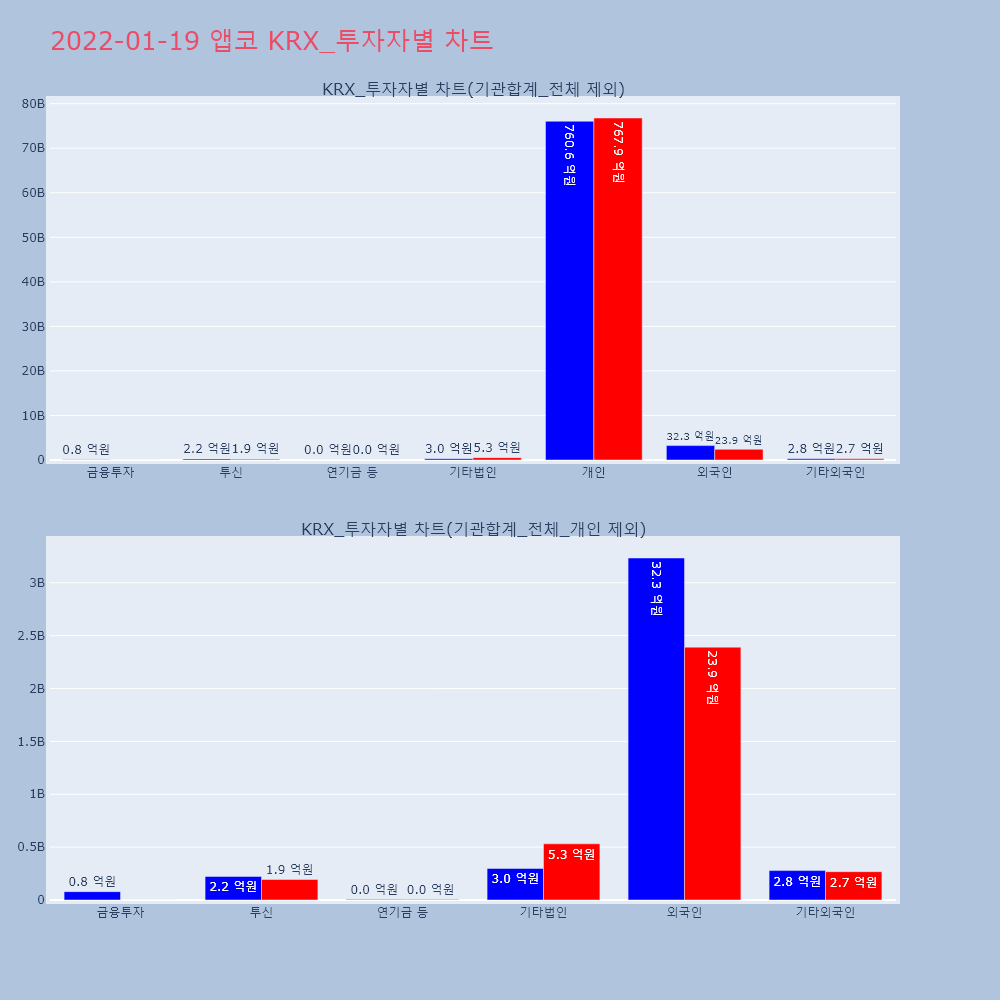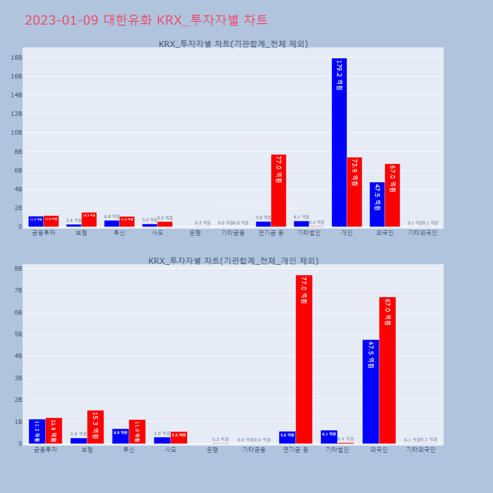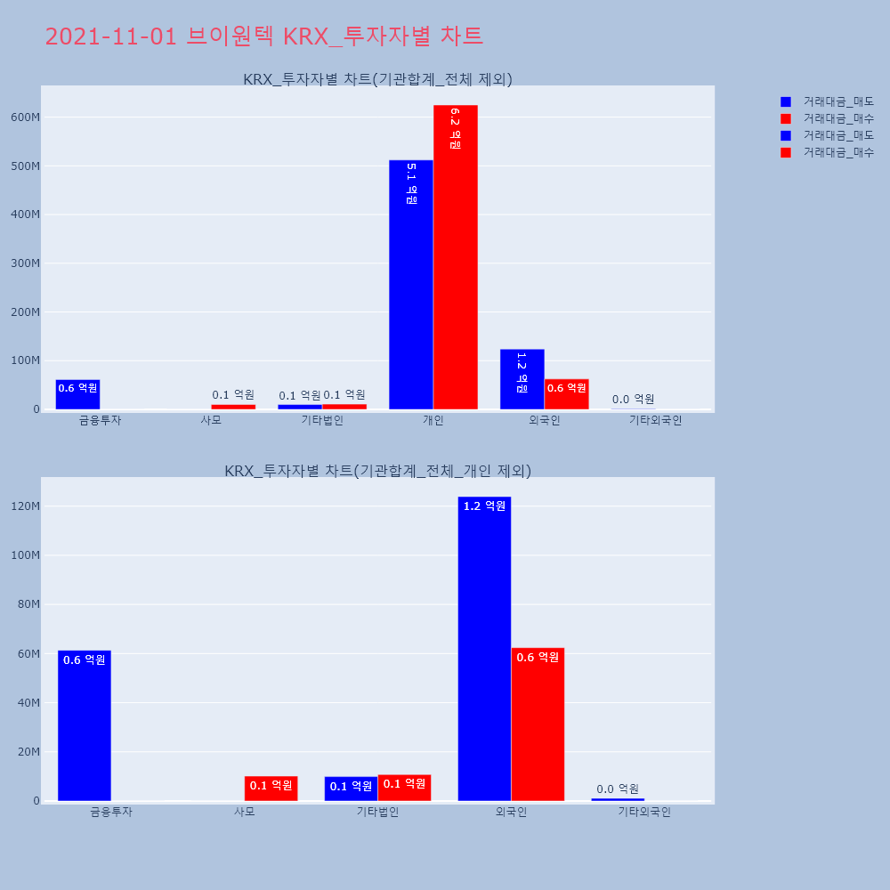 | 투자기관 | 거래량_매도 | 거래량_매수 | 거래량_순매수 | 거래대금_매도 | 거래대금_매수 | 거래대금_순매수 |