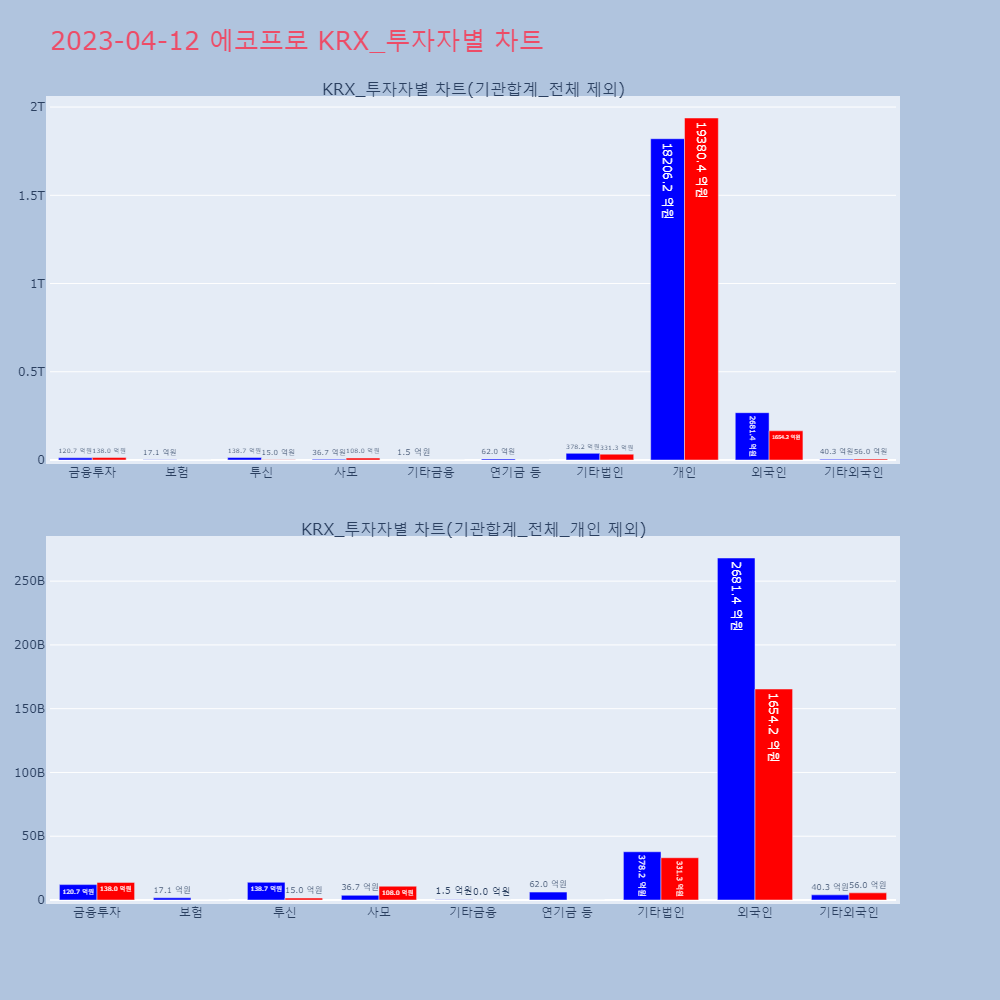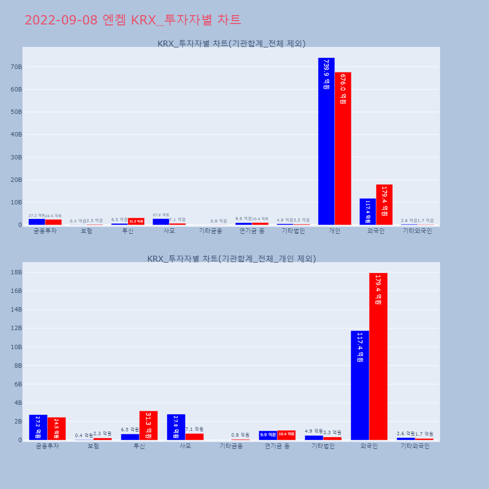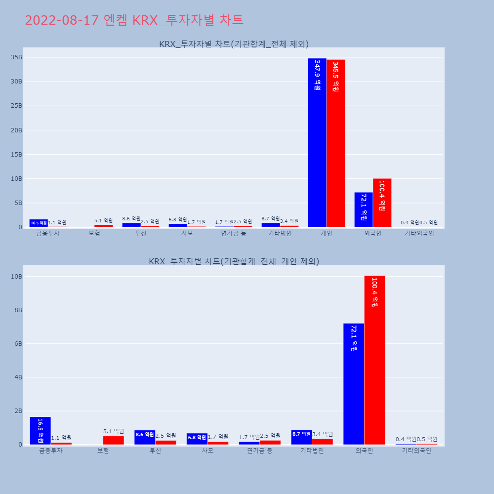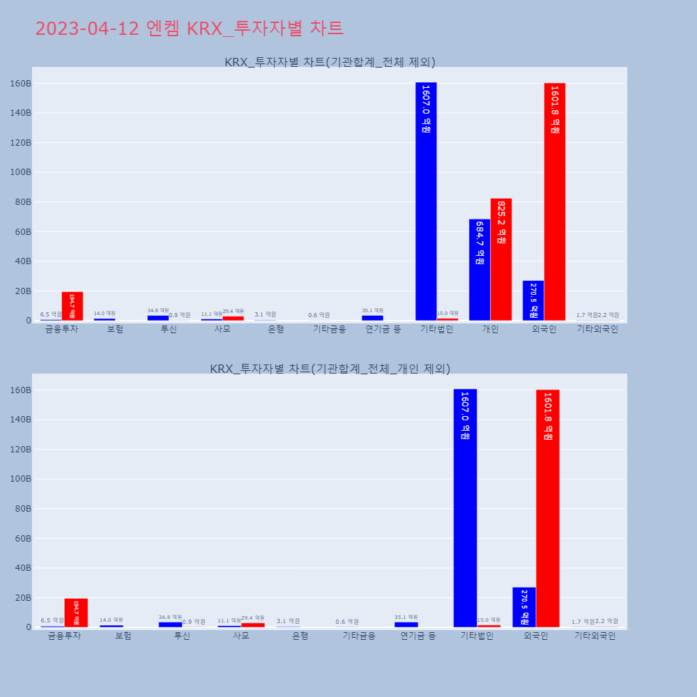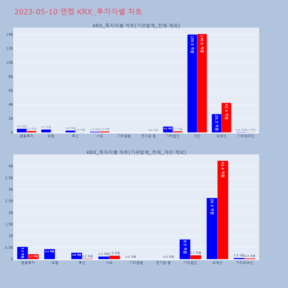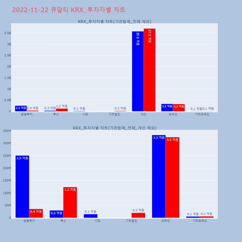 | 투자기관 | 매도량/금액(백) | 매수량/금액(백) | 순매수량/금액(백) |