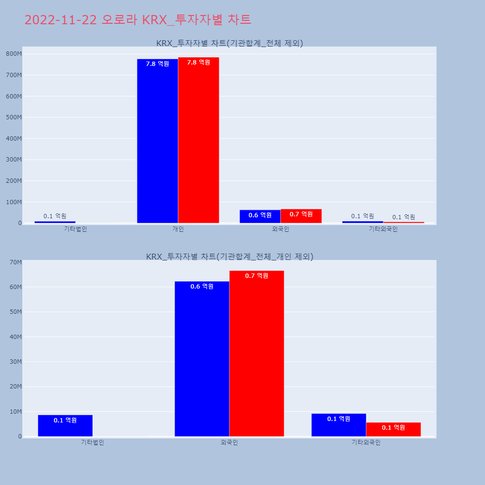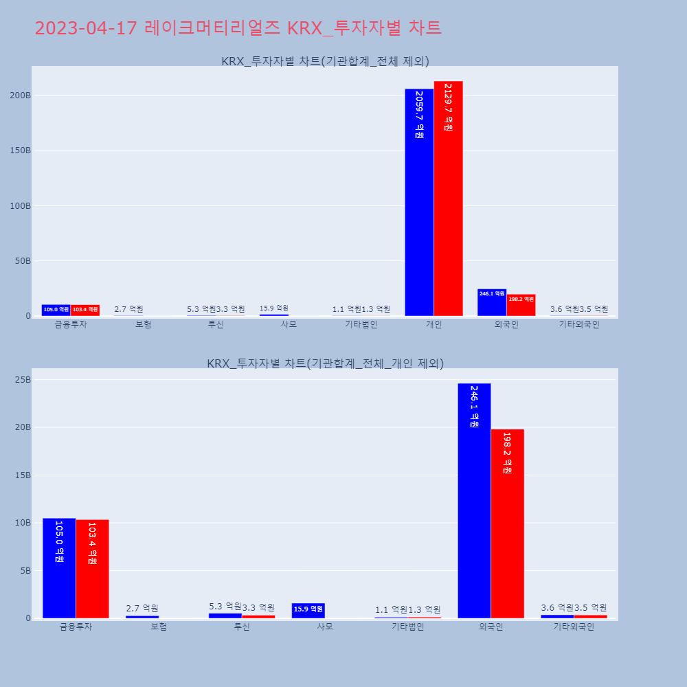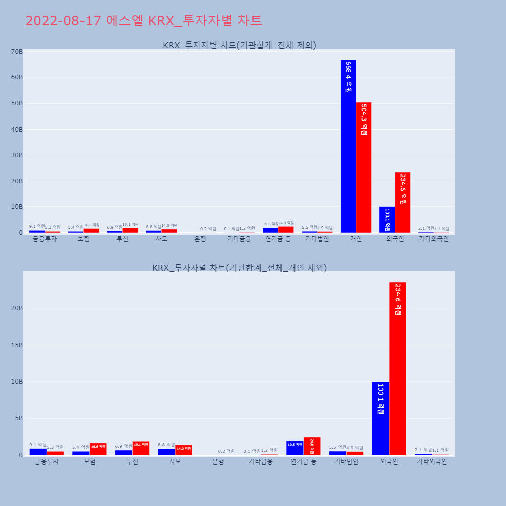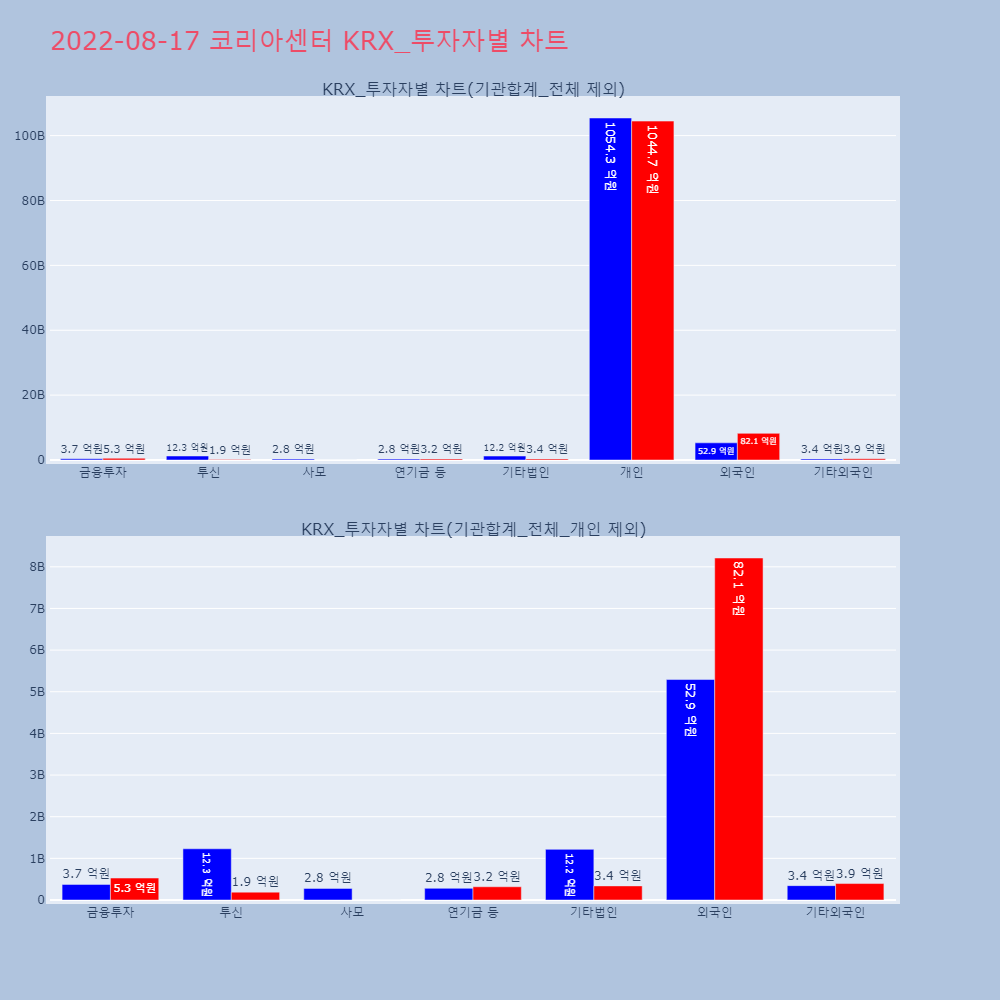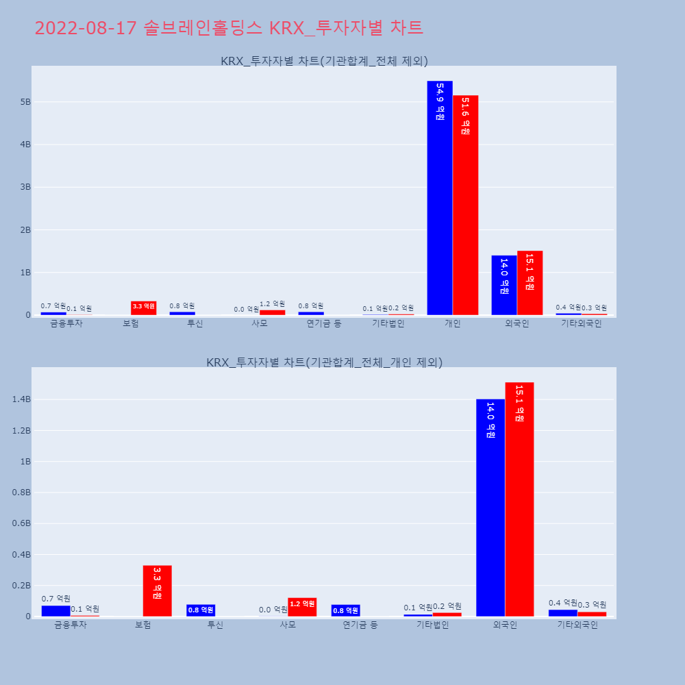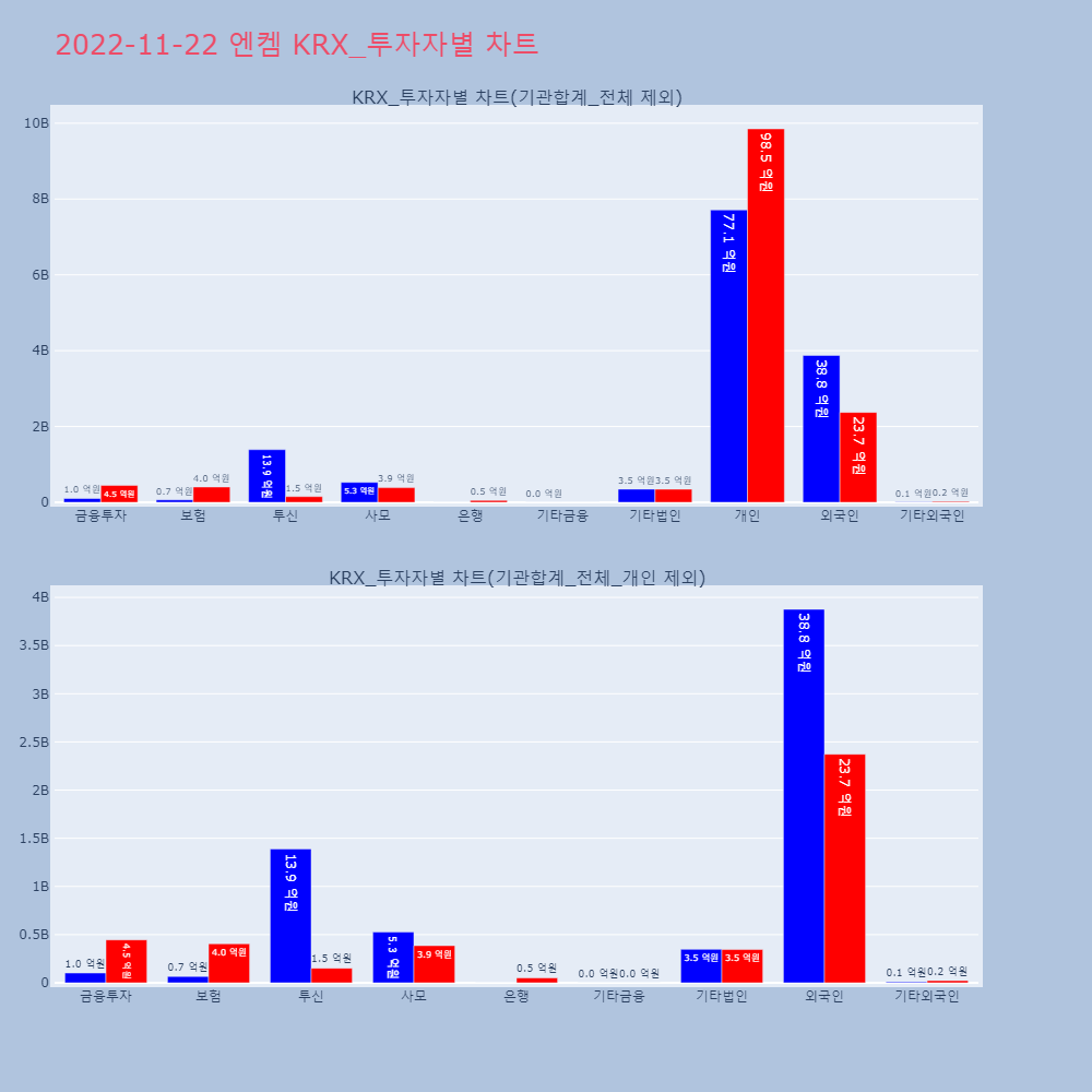 | 투자기관 | 매도량/금액(백) | 매수량/금액(백) | 순매수량/금액(백) |