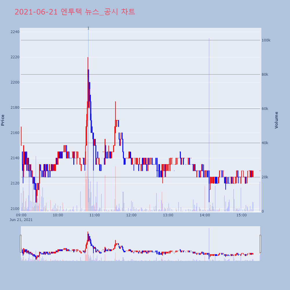 | 3 | [장중수급포착] 엔투텍, 외국인 56.11만 주 대량 순매수... 주가 +15.28% [서울=뉴스핌] 로보뉴스 = 17일 13시 30분 현재 | 뉴스핌 | 엔투텍 | 2023-04-17 13:30:58 |
